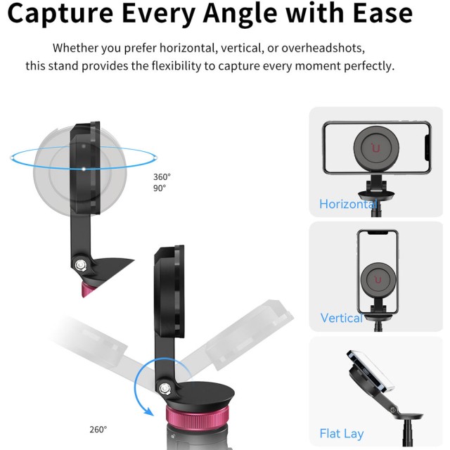 Zachyťte perfektné zábery kdekoľvek s mini statívom Ulanzi MT-84 pre MagSafe. Tento konvertibilný statív slúži zároveň ako selfie tyč a je vybavený magnetickým držiakom kompatibilným s telefónmi a puzdrami MagSafe. Držiak sa otáča o 360° a otočí sa o 90° pre vertikálnu alebo horizontálnu orientáciu, čo umožňuje flexibilné uhly snímania. S robustnou nosnosťou 2,2 lb môže podporovať telefóny s ďalším príslušenstvom, ako sú mikrofóny alebo LED svetlá. MT-84 je vyrobený z ľahkého hliníka a odolného plastu a dá sa vysunúť až na 60,2", čo umožňuje fotografovanie z vysokého uhla, zatiaľ čo odnímateľné Bluetooth diaľkové ovládanie umožňuje ovládanie bez použitia rúk až do vzdialenosti 32,8 ft. MT-84 je ideálny pre vlogerov, tvorcov obsahu a cestovateľov a uľahčuje fotografovanie a nahrávanie videí.