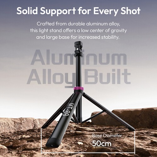 Ulanzi MT-89 je univerzálny a prenosný svetelný stojan určený pre fotografov, kameramanov a tvorcov obsahu. S nastaviteľnou výškou až 208 cm, rýchloupínacím držiakom a konštrukciou z hliníkovej zliatiny poskytuje stabilnú podporu pre fotoaparáty, svetlá, svorky na telefóny a akčné kamery, vďaka čomu je ideálny pre štúdiové aj mobilné použitie.