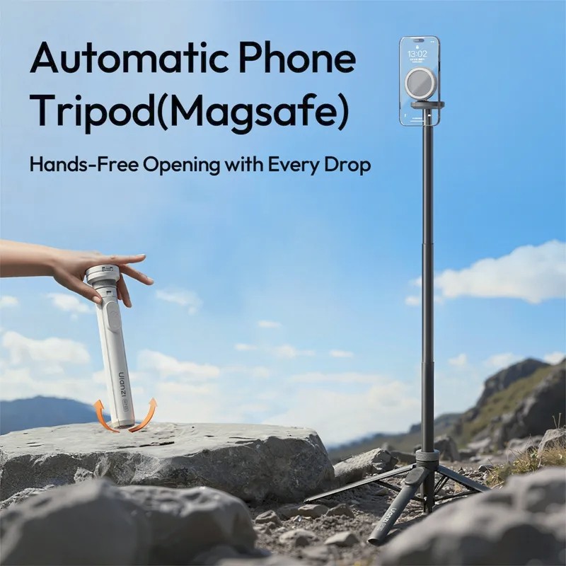 Zachyťte každý uhol bez námahy s automatickým statívom pre telefón Ulanzi MT85 v čiernej farbe. Jeho inovatívny dizajn so štyrmi nohami a protišmykovými podložkami zaisťuje stabilitu na akomkoľvek povrchu, zatiaľ čo obojstranný držiak MagSafe vám umožňuje bezpečne pripojiť telefón alebo príslušenstvo. Statív sa dá predĺžiť na 1,5 m (59,1") pomocou 7-dielneho systému s otočným zámkom, vďaka čomu je ideálny na celotelové zábery, skupinové fotografie a pohľady z nadhľadu. Viacosový otočný držiak telefónu umožňuje fotografovanie na výšku, na šírku a z kreatívnych uhlov. Skrytý diaľkový ovládač Bluetooth umožňuje bezdrôtové ovládanie až do vzdialenosti 10 m, vďaka čomu môžete fotografovať a nahrávať videá bez použitia rúk. MT85 je s hmotnosťou len 385 g ideálny pre tvorcov, ktorí sú neustále v pohybe.