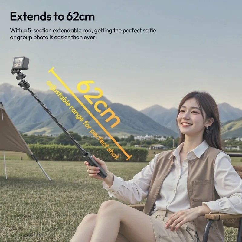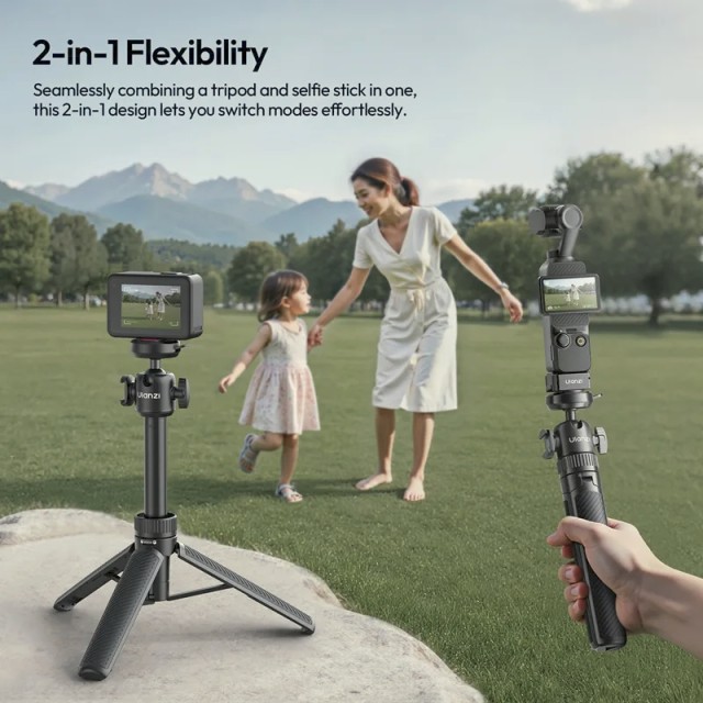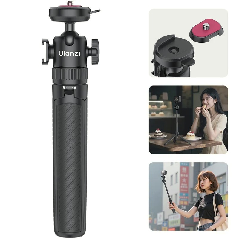 Ulanzi MT90 je kompaktná selfie tyč a statív 2 v 1 s rýchloupínacím systémom Cka. Dá sa predĺžiť až na 62 cm, podporuje zariadenia s hmotnosťou do 1,5 kg a je vybavená otočnou guľovou hlavou s rozsahom 360° pre univerzálne uhly snímania. Ideálna pre smartfóny, akčné kamery a bezzrkadlové fotoaparáty.