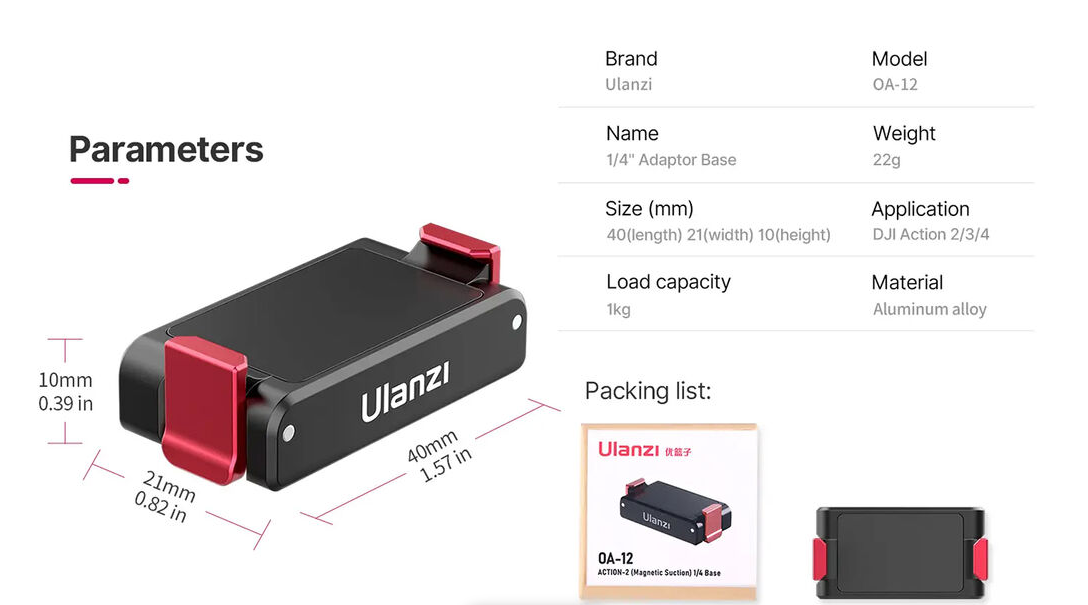 1 × Ulanzi Magnetic 1/4"-20 základňa