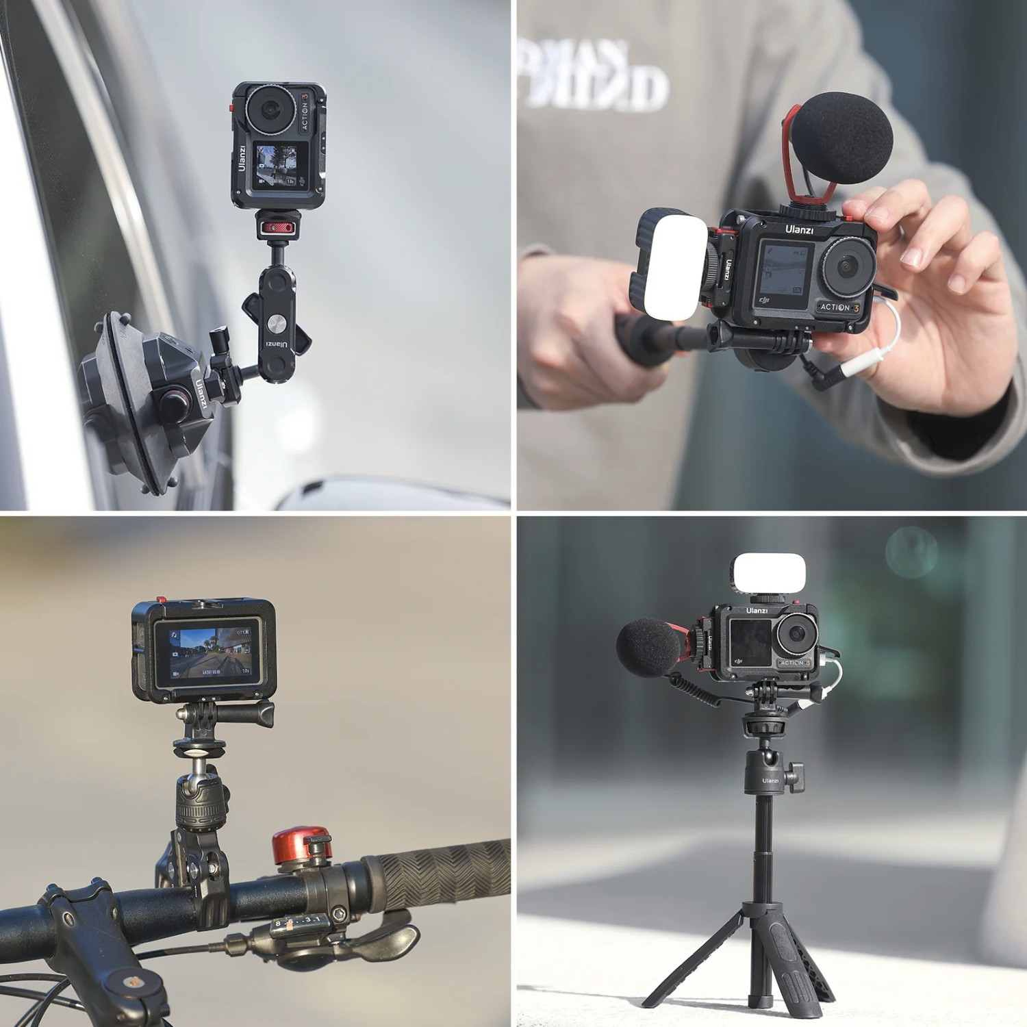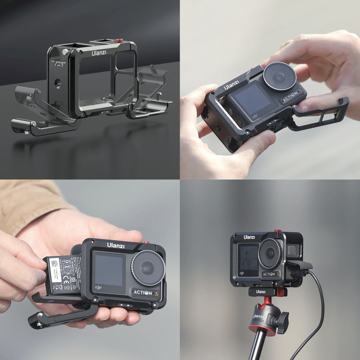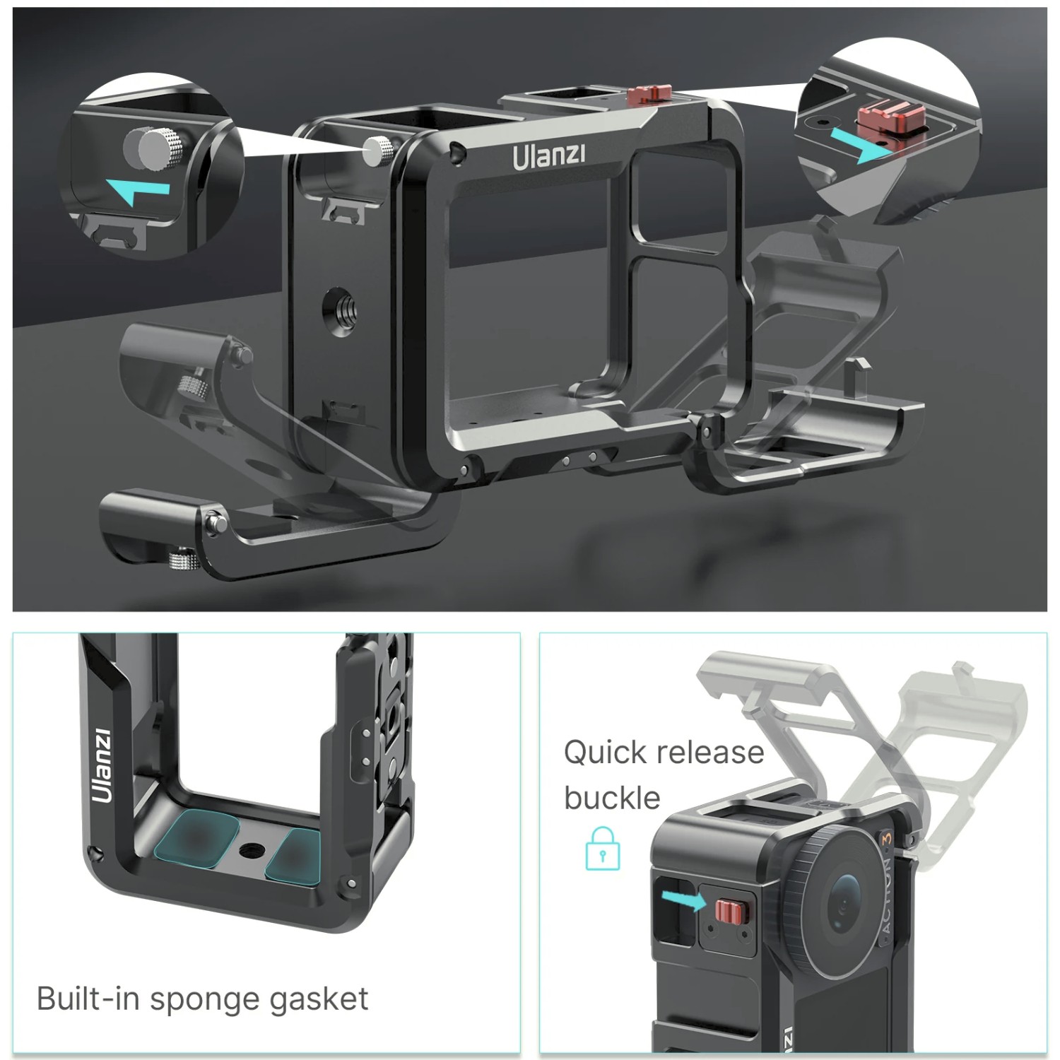 Kovová kamerová klietka Ulanzi OA-14 C-Action je odolná a univerzálna klietka určená pre DJI Osmo Action 3 a Action 4. Ponúka viacero možností upevnenia mikrofónov, svetiel a ďalšieho príslušenstva a zároveň umožňuje jednoduché prepínanie medzi horizontálnym a vertikálnym režimom snímania.
