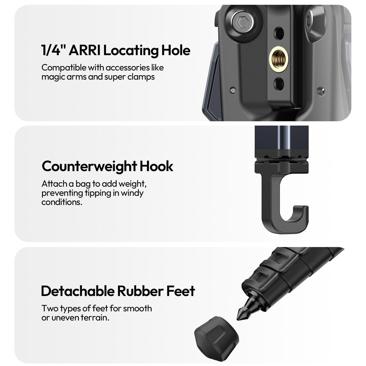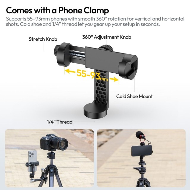 Ulanzi T156 je kompaktný, celokovový statív určený pre tvorcov, ktorí potrebujú stabilitu bez objemnosti. S maximálnou výškou 155 cm a dĺžkou v zloženom stave len 45 cm je ideálny na cestovanie, vlogovanie a tvorbu mobilného obsahu. 360° guľová hlava a rýchloupínací tanier umožňujú rýchle a flexibilné nastavenie, zatiaľ čo robustná hliníková konštrukcia zaisťuje dlhodobú odolnosť.