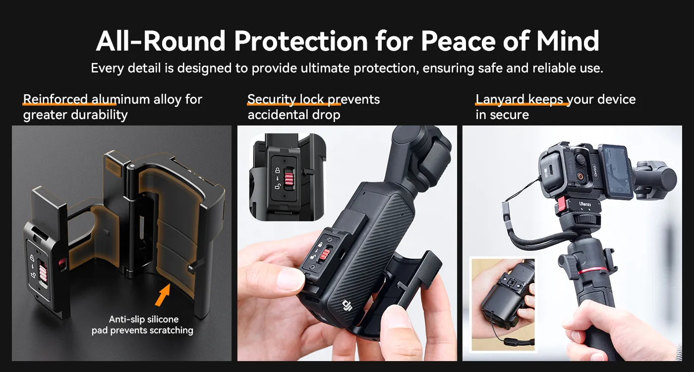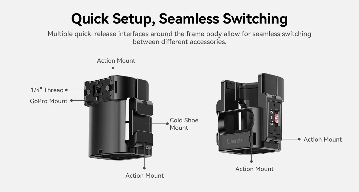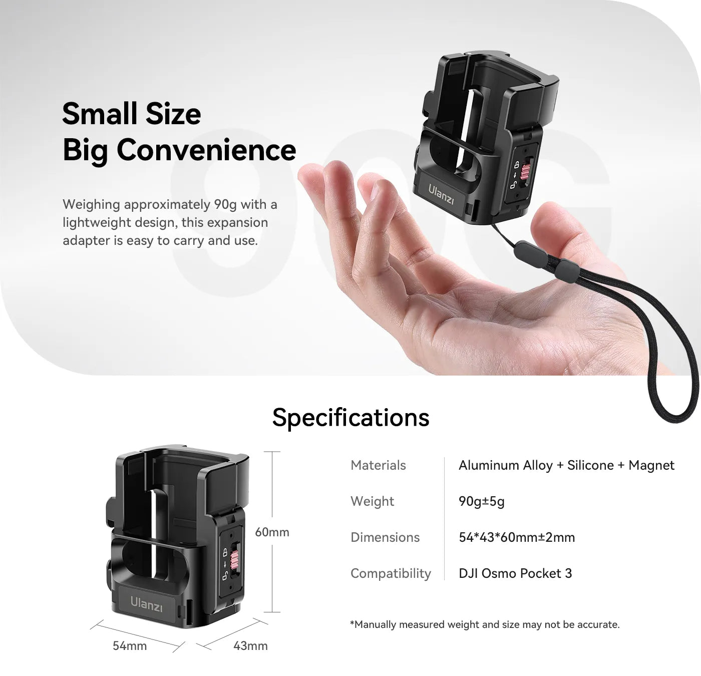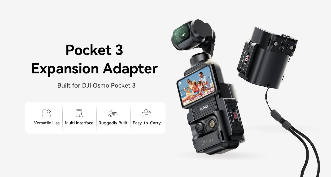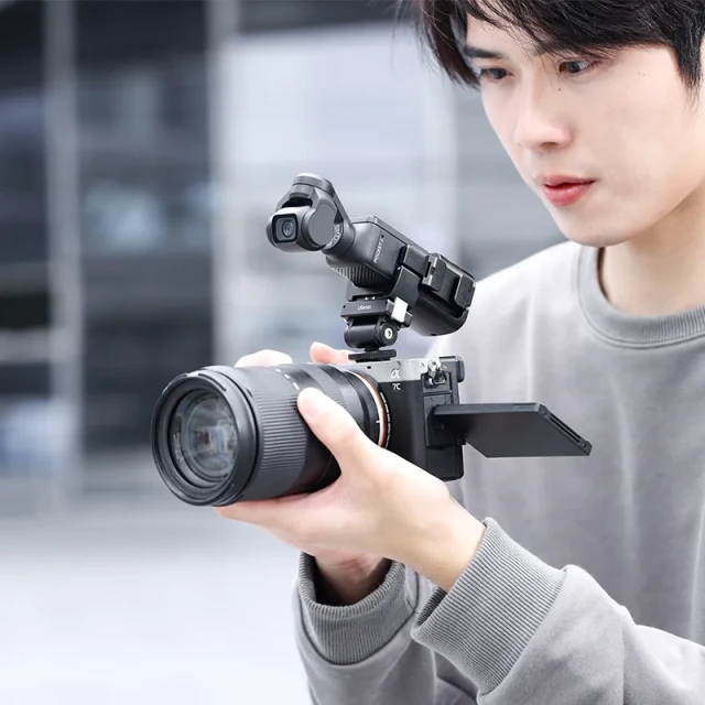 Rozširujúci adaptér Ulanzi PK-06 C014 je odolný držiak z hliníkovej zliatiny, ktorý je navrhnutý tak, aby vylepšil vaše zariadenie DJI Osmo Pocket 3. Vďaka bezpečnému otočnému uzáveru pridáva 1/4-palcový závit a držiaky pre akčné kamery, ktoré umožňujú plynulé fotografovanie na šírku alebo na výšku. Je kompatibilný so statívmi, držiakmi na bicykel a ďalšími príslušenstvami, vďaka čomu môžu tvorcovia napájať svoje zariadenia bez prerušenia snímania. Kompaktný, odolný a univerzálny – tento adaptér je nevyhnutnou súčasťou výbavy mobilných filmárov a vlogerov.