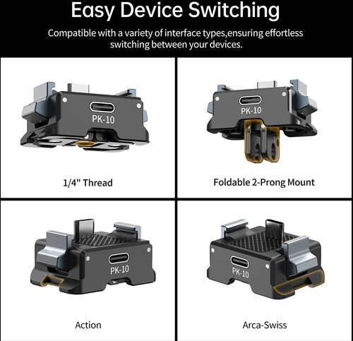 Zlepšite svoj pracovný postup s DJI Osmo Pocket 3 pomocou základnej dosky Ulanzi PK-10 USB-C, presne navrhnutého 2-kolíkového montážneho riešenia, ktoré vám zabezpečí napájanie a pripravenosť na snímanie. Základnú dosku pripevnite na Pocket 3 za pár sekúnd pomocou bezpečného magnetického systému a potom pripojte akýkoľvek kábel USB-C na nabíjanie fotoaparátu bez odstránenia držiaka – ideálne pre dlhšie časozberné zábery, vlogovanie alebo živé vysielanie. Tento kompaktný adaptér je vyrobený z odolnej zliatiny hliníka so silikónovými prvkami pre lepšiu priľnavosť a ochranu. Pridáva minimálny objem a zároveň umožňuje rýchle prechody medzi gimbalmi, statívmi, klietkami alebo ručnými držiakmi. S hmotnosťou len 35 g a rozmermi 2,44 x 2,44 x 1,18 palca sa ľahko zmestí do akejkoľvek tašky na kameru. Integrovaný port USB-C podporuje simultánne nabíjanie a prevádzku, čím eliminuje prestoje a zaručuje, že nikdy nezmeškáte žiadny záber.