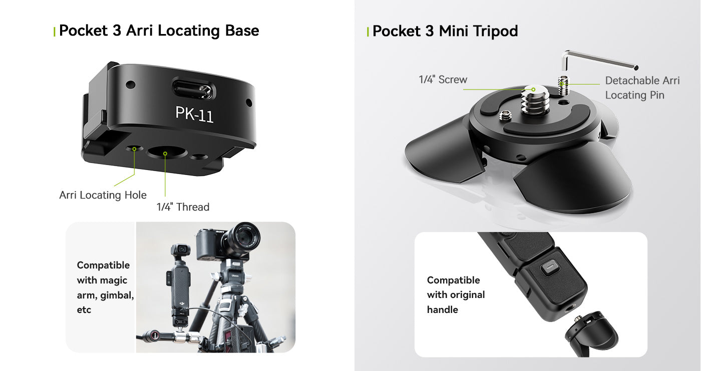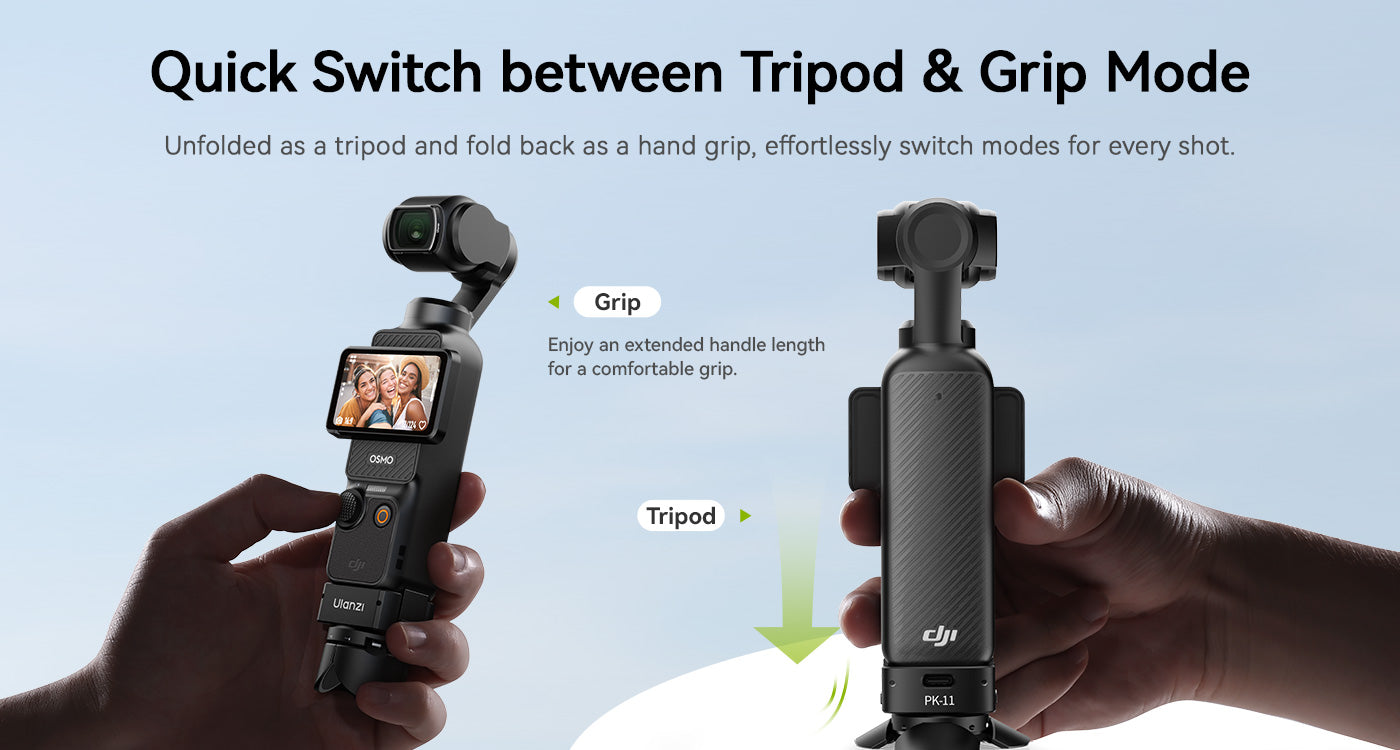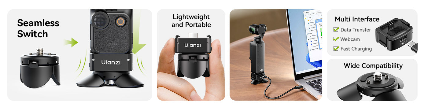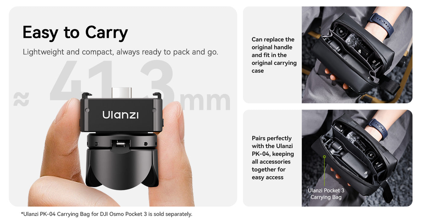 Mini statív Ulanzi Pocket3 je ideálnym kompaktným spoločníkom pre používateľov DJI Osmo Pocket 3, ktorí hľadajú stabilitu a flexibilitu na cestách. Vďaka ľahkej konštrukcii a multifunkčnosti sa dá ľahko prepínať medzi režimom statívu a ručného držadla. Integrovaný 1/4" skrutku a odnímateľný lokalizačný kolík Arri zabezpečujú širokú kompatibilitu s príslušenstvom, zatiaľ čo plne funkčný dátový port typu C podporuje nabíjanie počas používania. Tento mini statív je ideálny na cestovanie, vlogovanie a fotografovanie na stole a ponúka profesionálny výkon v balení vo veľkosti vrecka