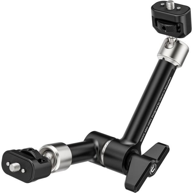 10" kĺbové rameno je vybavené dvojitými 360° nastaviteľnými guľovými hlavami so skrutkami 1/4"-20 na každom konci, čo poskytuje úplnú voľnosť pri nakláňaní, otáčaní a nastavovaní pripojených zariadení. S nosnosťou až 6,6 lb môže bezpečne držať svetlá, monitory, mikrofóny alebo kamery. Nezávislé uzamykacie gombíky a poistné kolíky zabezpečujú, že vaše zariadenie zostane počas používania v bezpečí, zatiaľ čo konštrukcia z hliníkovej zliatiny a nehrdzavejúcej ocele poskytuje odolnosť bez nadmernej hmotnosti.