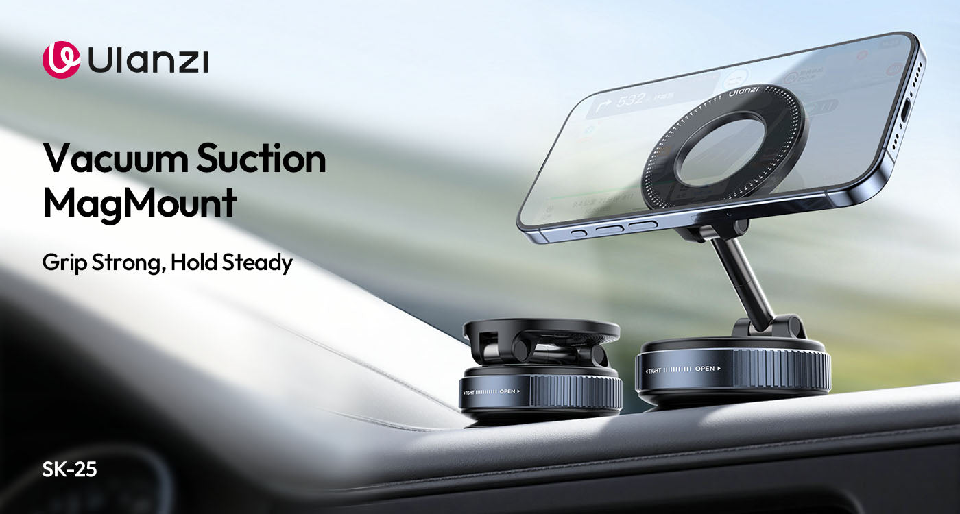 Zabezpečte svoj smartfón kdekoľvek s Ulanzi SK-25, kompaktným držiakom kompatibilným s MagSafe, ktorý ponúka silné vákuové prisatie a flexibilné uhly pohľadu. Je navrhnutý pre tvorcov, dochádzajúcich a multitaskerov, ktorí potrebujú pohodlie bez použitia rúk na cestách.