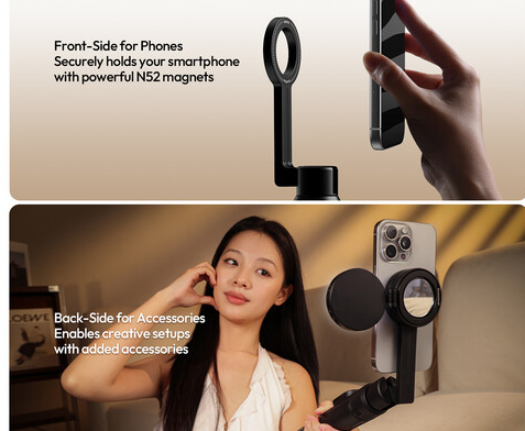 Vybavený bezpečným systémom upínania telefónu a silnou magnetickou podporou N52, SK27 zaisťuje pevné uchytenie smartfónov so šírkou od 56 mm do 92 mm. Obojstranný dizajn tiež umožňuje pripevnenie príslušenstva na zadnej strane, čo umožňuje rozšírené nastavenia s osvetlením alebo iným kreatívnym vybavením.
