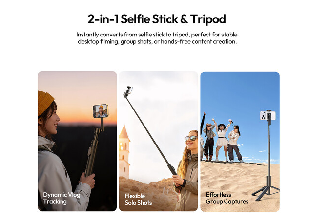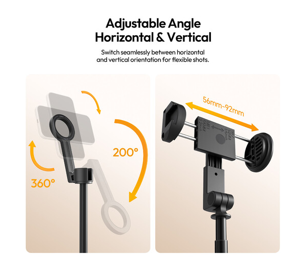 S maximálnou dĺžkou vysunutia až 154 cm poskytuje táto selfie tyč vynikajúci dosah pre široké skupinové zábery a zvýšené perspektívy. Nastaviteľná hlava podporuje otáčanie o 360° a naklonenie o 200°, čo umožňuje plynulé prepínanie medzi horizontálnym a vertikálnym režimom snímania pre maximálnu kreatívnu kontrolu.