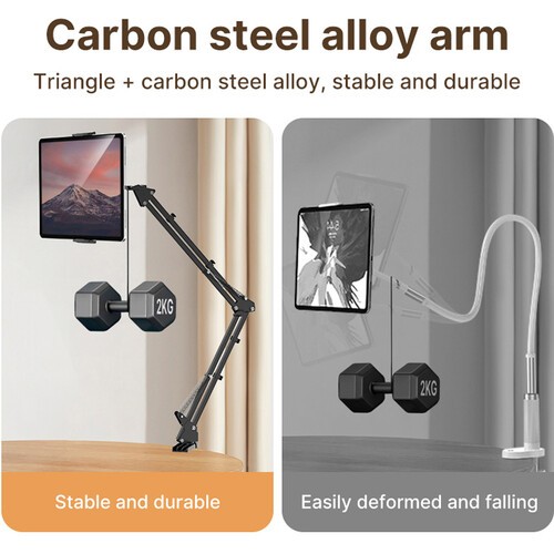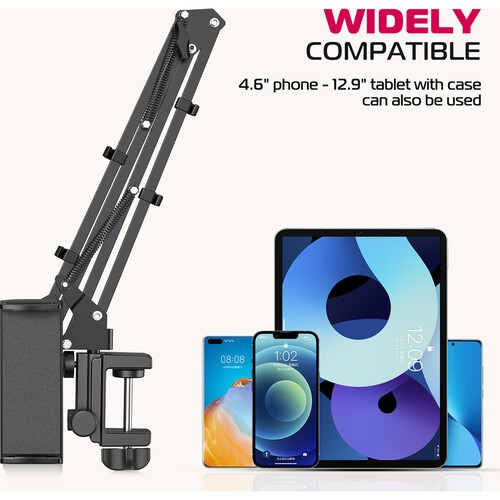 Veľmi podobný štandardným kancelárskym stolným lampám, tento držiak na telefóny a tablety s dvojitým ramenom od spoločnosti Ulanzi je navrhnutý tak, aby vám poskytoval ergonomickejšie, pohodlnejšie a univerzálnejšie zážitky zo sledovania živých prenosov, prehliadania sociálnych médií v posteli alebo videohovorov s blízkymi. Svorka sa bezpečne pripevní k akémukoľvek stolu, čelu postele alebo tyči s hrúbkou alebo obvodom do 4 cm. Pružinová svorka pojme zariadenia s šírkou od 11,5 cm do 33 cm, čo ju robí ideálnou pre telefóny aj veľké tablety. Po nastavení si môžete vychutnať extrémny rozsah nastavenia a predĺženia vďaka otočnej základni, trom otočným bodom a 10 cm dlhému držiaku s 360° otáčaním zariadenia. Vďaka dvojitému 33 cm mechanizmu s dvojitou pružinou je možné nastavenie vykonať jednou rukou a zostáva stabilné.