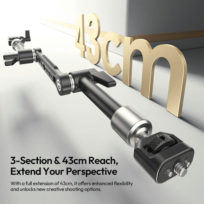3-dielne kĺbové rameno Ulanzi TA10 Magic je určené pre tvorcov, ktorí potrebujú maximálnu flexibilitu a spoľahlivú pevnosť v jednom kompaktnom riešení. Vďaka trojdielnej kĺbovej konštrukcii s celkovou dĺžkou 43 cm toto rameno ponúka viac kreatívnych uhlov snímania pre živé monitorovanie, zábery z nadhľadu, sledovanie POV a komplexné konštrukcie.