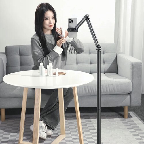 Natočte seba, svoje pracovisko alebo obsah stola s presnosťou a flexibilitou pomocou nastaviteľného podlahového stojanu na telefón Ulanzi TH07 Overhead. Tento stojan s výškou až 4,75' a nastaviteľnou výškou od 31,5" do 57" podporuje kreatívne natáčanie videí, tutoriálov, ukážok varenia, remesiel alebo živého vysielania.