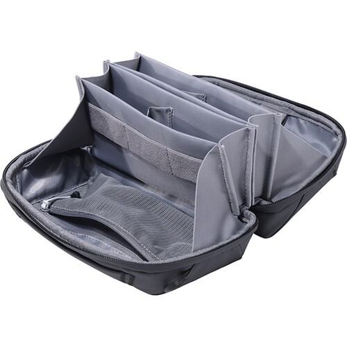 Čierna taška TRAKER Test Pouch Mini od spoločnosti Ulanzi je univerzálna, vodu odpudzujúca polyesterová taška s viacerými priehradkami pre organizované ukladanie. Kompaktná taška na zips má vrecká v štýle origami na ukladanie rôznych príslušenstiev a upevňovacie body na použitie voliteľného ramenného popruhu. Keď je taška prázdna, váži len 0,25 kg.