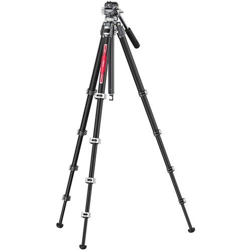 Päťdielne nohy statívu z uhlíkových vlákien sú vybavené otočnými zámkami a tromi nezávislými polohami rozloženia nôh, čo poskytuje pracovný rozsah výšky od 14 cm pre zábery z nízkeho uhla až po 142 cm pri úplnom vysunutí. Odnímateľný stredový stĺpik umožňuje fotografovanie v prevrátenej alebo zdvihnutej polohe a obsahuje záťažový háčik pre dodatočnú stabilitu. Dvojité otvory so závitom 1/4"-20 na oboch stranách statívu a guľovej hlavy umožňujú montáž príslušenstva, ako sú monitory, svetlá alebo mikrofóny. Odnímateľné hroty na nohách poskytujú dodatočnú priľnavosť na nerovnom teréne. Stativ sa dá kompaktne zložiť na 45 cm a je dodávaný s úložnou taškou, rýchloupínacou doskou typu Arca, multifunkčnou rukoväťou/skrutkovačom, siedmimi skrutkovačovými hrotmi a tromi kolíkmi na nohy pre kompletnú inštaláciu a údržbu v teréne.