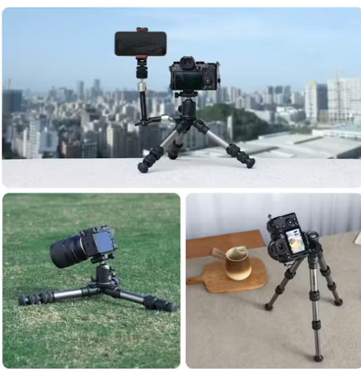 Nohy s otočným zámkom ponúkajú plynule nastaviteľnú výšku od 140 mm do 440 mm a mechanizmus rýchleho nastavenia uhla umožňuje jednoduché nastavenie nízkeho uhla. Je vyrobený z hrubého hliníka, unesie až 20 kg a odnímateľné protišmykové gumové nožičky zaisťujú stabilitu na akomkoľvek povrchu. Vstavaný 1/4-palcový bočný držiak umožňuje pripevnenie príslušenstva, ako je držiak na smartfón, LED svetlo alebo magické rameno, čím sa zvyšuje univerzálnosť pre rôzne scenáre fotografovania.