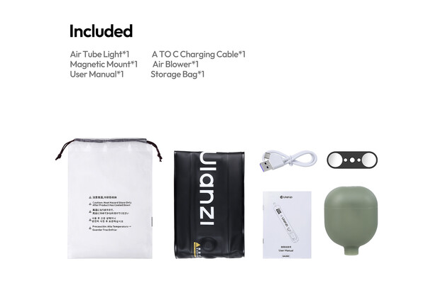 UA20C sa dodáva s nabíjacím káblom, vzduchovým ventilátorom a úložným vakom, čo z neho robí kompletné riešenie osvetlenia pre tvorcov na cestách.