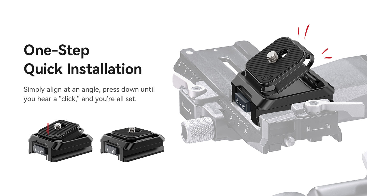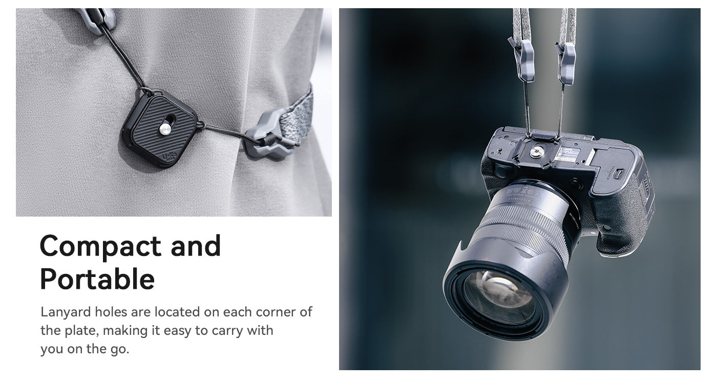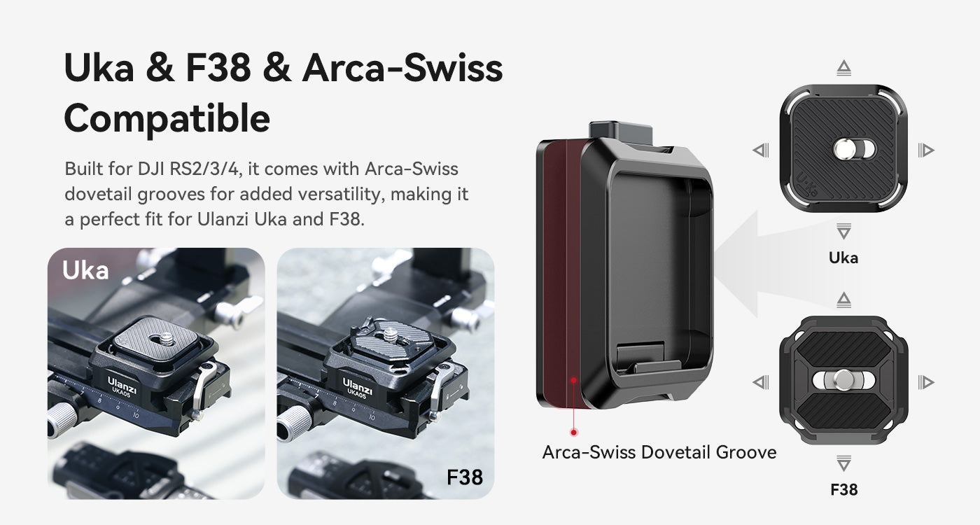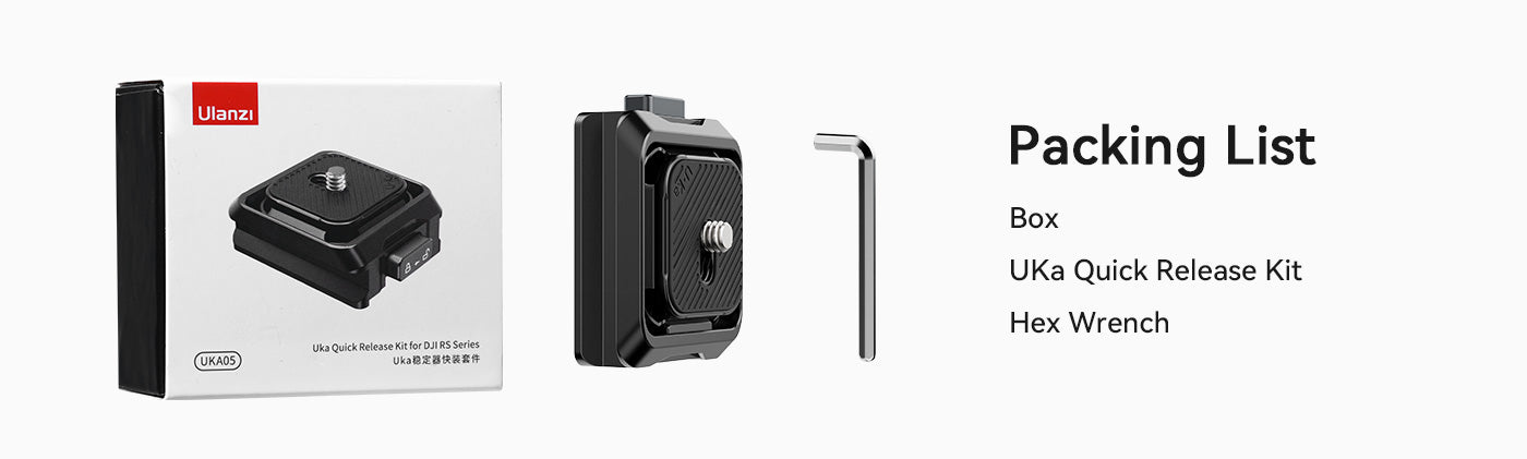 Súprava Ulanzi UKA05 Uka Quick Release Kit pre DJI RS2/3/4 je dokonalým vylepšením pre rýchle a bezpečné upevnenie kamery. Je navrhnutá tak, aby bola kompatibilná s Arca-Swiss, Uka a F38, a ponúka inštaláciu v jednom kroku, protišmykové gumové podložky a bezpečnostný zámok, ktorý zabraňuje náhodnému odpojeniu. Vďaka kompaktnej konštrukcii a dizajnu pripravenému na pripevnenie šnúrky je ideálna pre tvorcov, ktorí sú neustále v pohybe, a je nevyhnutnou súčasťou výbavy používateľov gimbalu DJI RS.