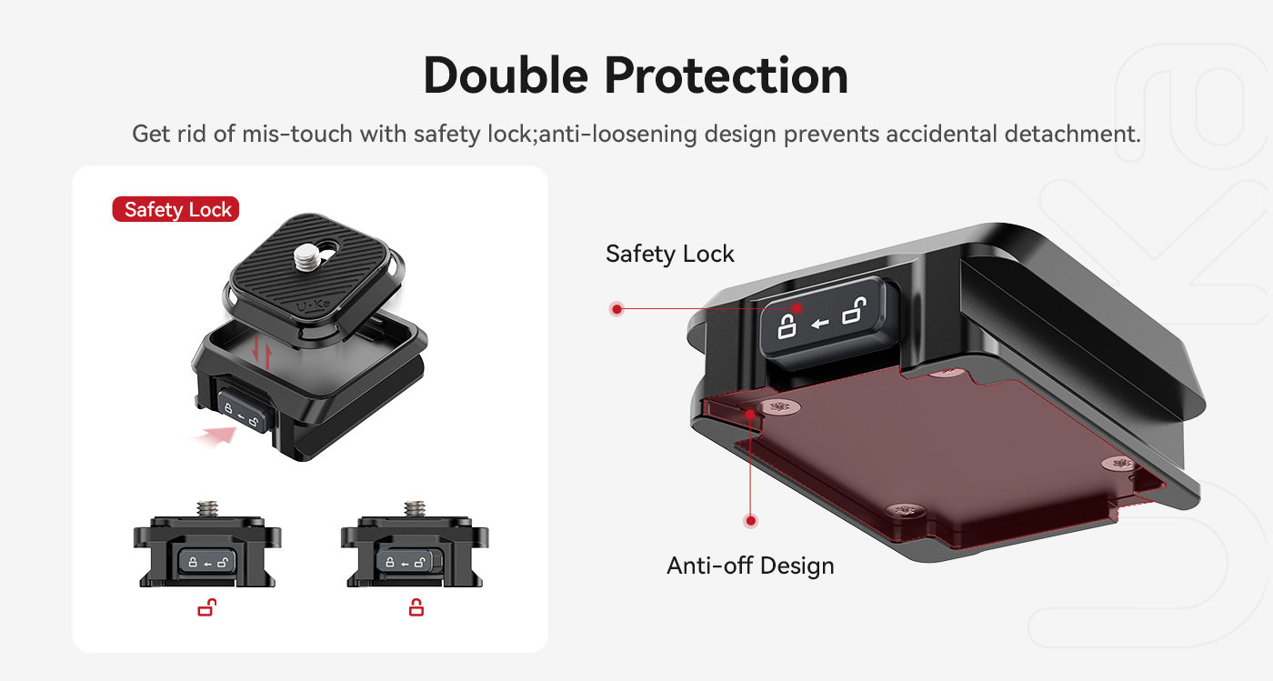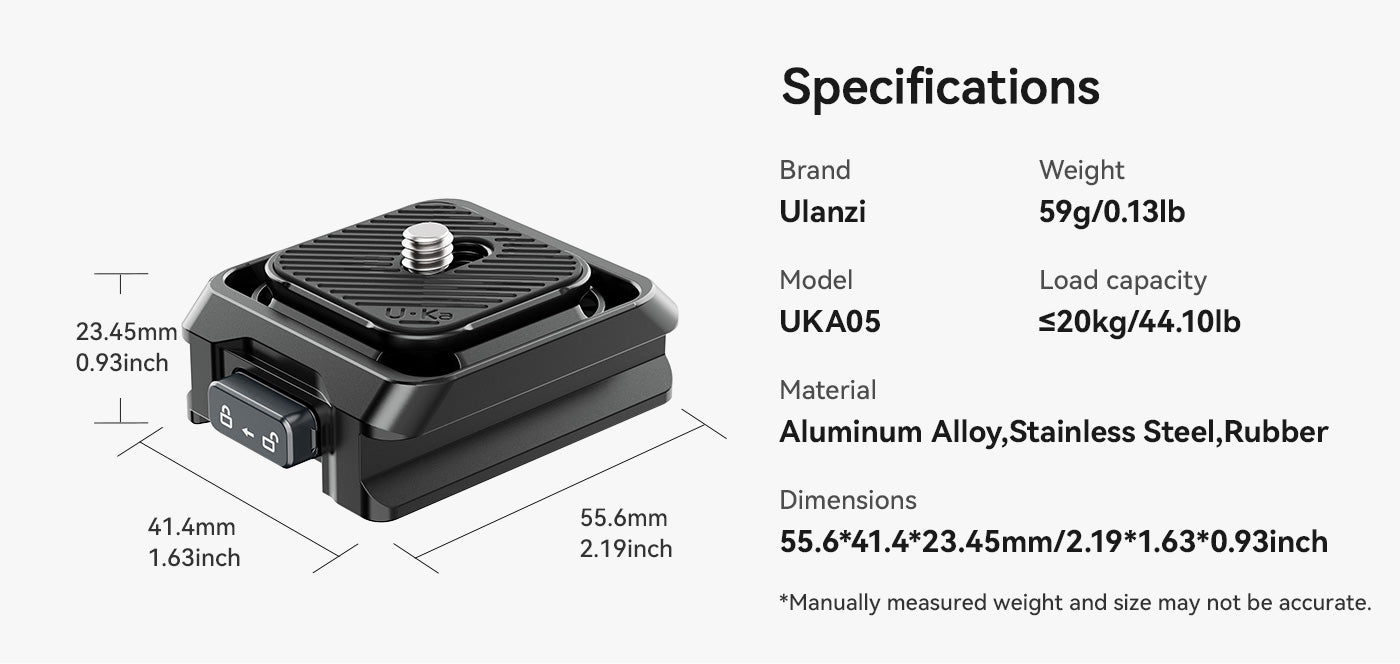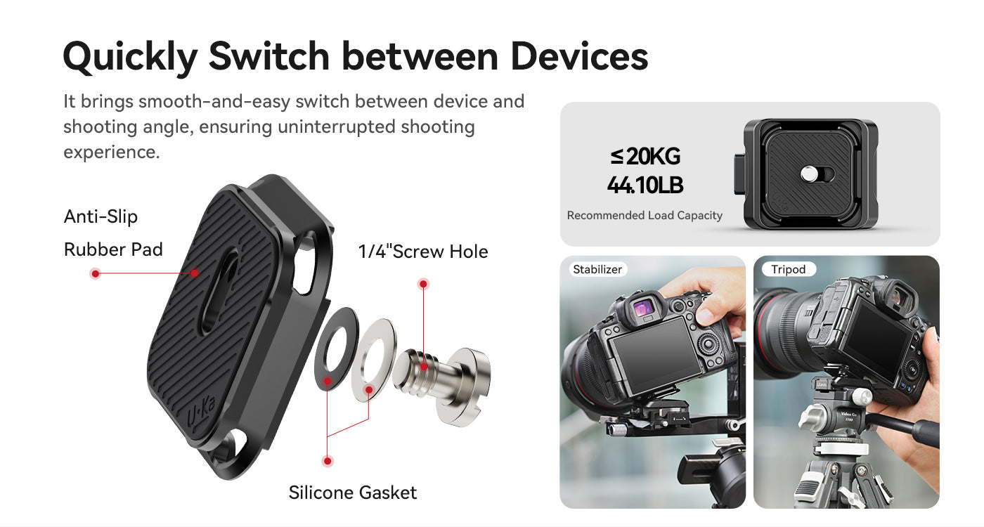Súprava Ulanzi UKA05 Uka Quick Release Kit pre DJI RS2/3/4 je dokonalým vylepšením pre rýchle a bezpečné upevnenie kamery. Je navrhnutá tak, aby bola kompatibilná s Arca-Swiss, Uka a F38, a ponúka inštaláciu v jednom kroku, protišmykové gumové podložky a bezpečnostný zámok, ktorý zabraňuje náhodnému odpojeniu. Vďaka kompaktnej konštrukcii a dizajnu pripravenému na pripevnenie šnúrky je ideálna pre tvorcov, ktorí sú neustále v pohybe, a je nevyhnutnou súčasťou výbavy používateľov gimbalu DJI RS.