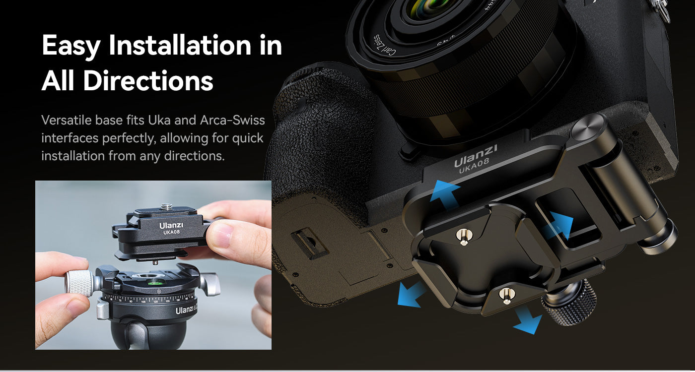 Ľahká inštalácia vo všetkých smeroch Perfektne sa hodí k rozhraniam Uka a Arca-Swiss. Rýchla inštalácia z akéhokoľvek smeru.