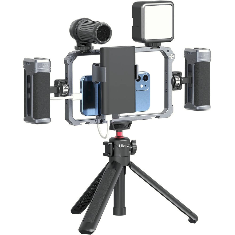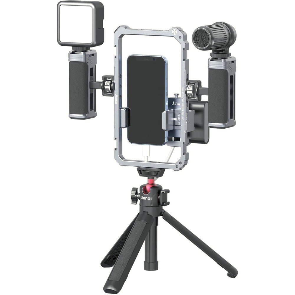 Ulanzi Universal Phone Vlogging Video Rig je univerzálny profesionálny držiak pre smartfóny, ktorý ponúka dve nastaviteľné rukoväte, viacero upevňovacích bodov a protišmykovú výstelku na stabilizáciu záberov pre vlogovanie, streamovanie alebo mobilné natáčanie filmov.