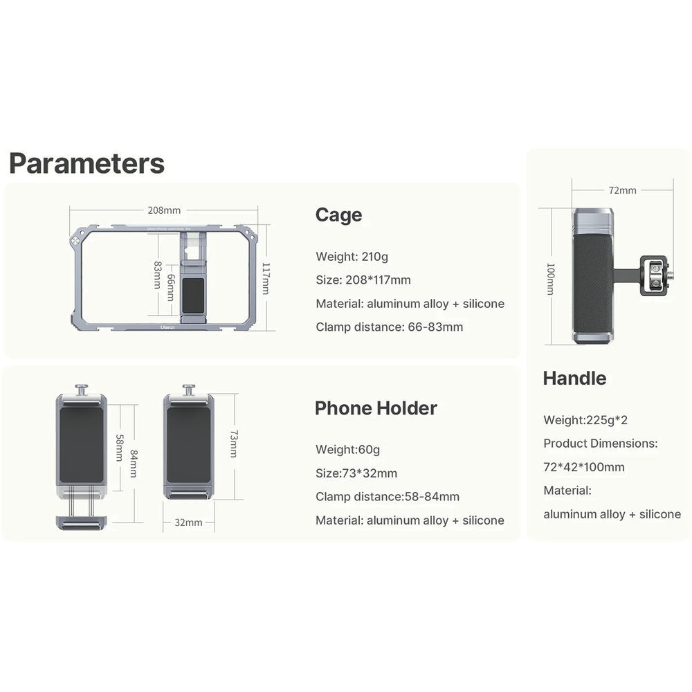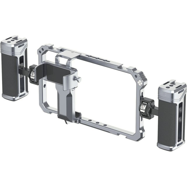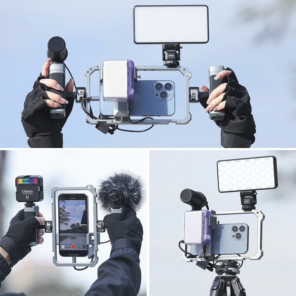 Trojstranná protiskluzová silikónová výstelka chráni váš telefón a udržuje ho v bezpečí, zatiaľ čo robustná konštrukcia z hliníkovej zliatiny zaisťuje odolnosť bez pridania nadmernej hmotnosti. Nech už vlogujete, vysielate naživo alebo vytvárajte filmový mobilný obsah, tento rig poskytuje stabilitu a rozširovateľnosť, ktoré zlepšujú váš pracovný postup.