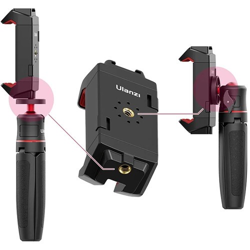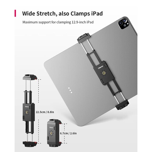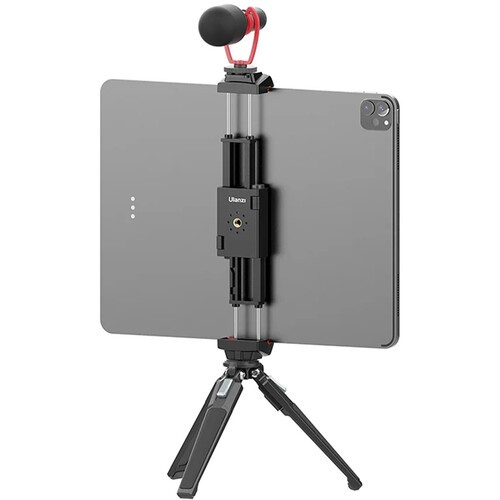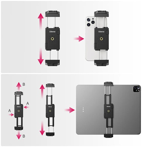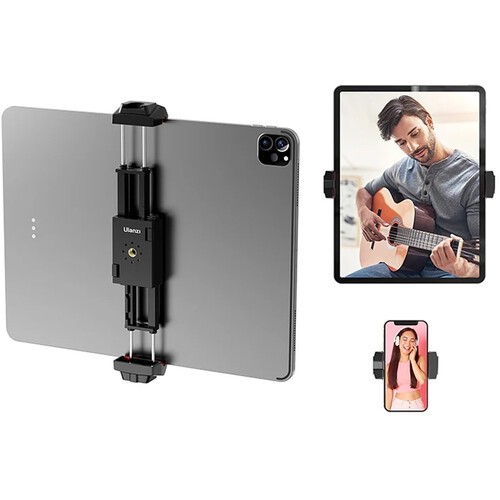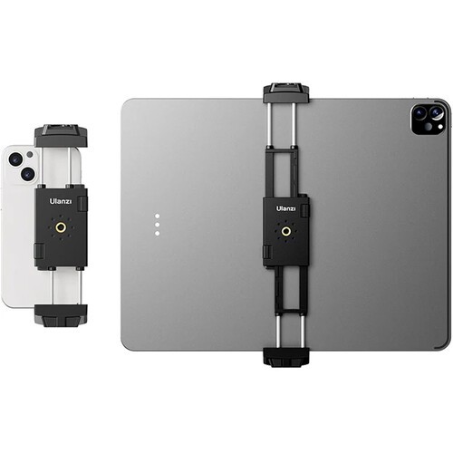 Stativový držiak ST-29 od spoločnosti Ulanzi, navrhnutý pre vlogerov, streamerov, tvorcov kreatívneho obsahu a ďalších, je vybavený jedným držiakom na studené topánky, ktorý možno použiť na svetlo, mikrofón alebo iné príslušenstvo, zatiaľ čo dva otvory so závitom 1/4"-20 umožňujú pripevnenie na stativ alebo selfie tyč. ST-29 je kompatibilný s väčšinou smartfónov a tabletov, vrátane 12,9" iPadu Pro, a je vhodný pre zariadenia s šírkou od 2,63 do 8,85" a môže sa používať v horizontálnej aj vertikálnej polohe. Na spodnej strane sa nachádza otvor, do ktorého sa zmestí nabíjací kábel, takže môžete zariadenie nabíjať, aj keď je pripevnené v držiaku ST-29. Súčasťou balenia sú aj silikónové podložky, ktoré chránia pred poškriabaním, a penová podložka, ktorá zabraňuje kĺzaniu zariadenia.