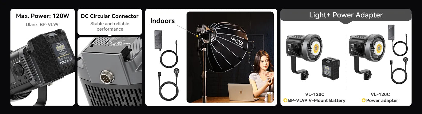 Vylepšite osvetlenie svojich videí s dvojfarebným / RGB videolampou Ulanzi 120 W s V-mount konektorom. Táto univerzálna lampa je ideálna na svadobné videá, skeče, livestreaming e-commerce a produktovú fotografiu a zaisťuje rovnomerné, mäkké osvetlenie vďaka vysokoúčinným COB lampovým žiarovkám.