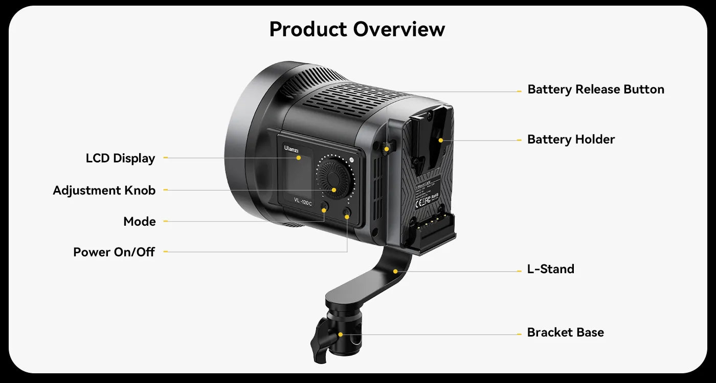 Vylepšite osvetlenie svojich videí s dvojfarebným / RGB videolampou Ulanzi 120 W s V-mountom. Táto univerzálna lampa je ideálna na svadobné videá, skeče, livestreaming v e-commerce a produktovú fotografiu. Zabezpečuje rovnomerné, mäkké osvetlenie vďaka vysokoúčinným COB žiarovkám. Ovládajte osvetlenie až na vzdialenosť 30 m pomocou aplikácie Ulanzi Connect a prispôsobte si nastavenia ako CCT, stmievanie, FX a skupiny svetiel. Vychutnajte si 20 prednastavených svetelných efektov s verziou RGB alebo 6 s verziou Bi-color. Medzi užívateľsky prívetivé funkcie patrí LCD displej, plynulý ovládač, otočný L-stojan o 360° a kompatibilita s držiakom Bowens.