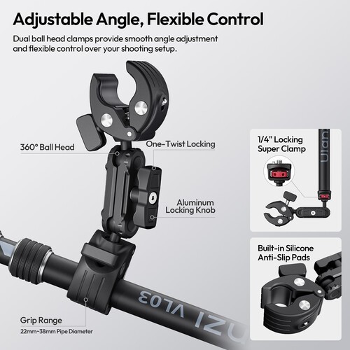 Model VL03 je konštruovaný s dôrazom na odolnosť a spoľahlivosť a je navrhnutý tak, aby pevne držal aj pri namáhaní pohybom, pričom si zachováva flexibilitu pri polohovaní. Jeho vylepšená predlžovacia tyč pomáha dosiahnuť rôznorodé perspektívy, od záberov z blízkej perspektívy až po široké filmové uhly, čo z neho robí univerzálny nástroj pre tvorcov obsahu.