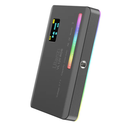 LED video svetlo Ulanzi VL120 RGB je vreckové, ale výkonné osvetľovacie riešenie s plnou kontrolou farieb RGB, nastaviteľnou farebnou teplotou 2500–9000 K, vstavanými efektmi a nabíjateľnou batériou s kapacitou 3100 mAh – ideálne pre tvorcov, ktorí sú často na cestách.