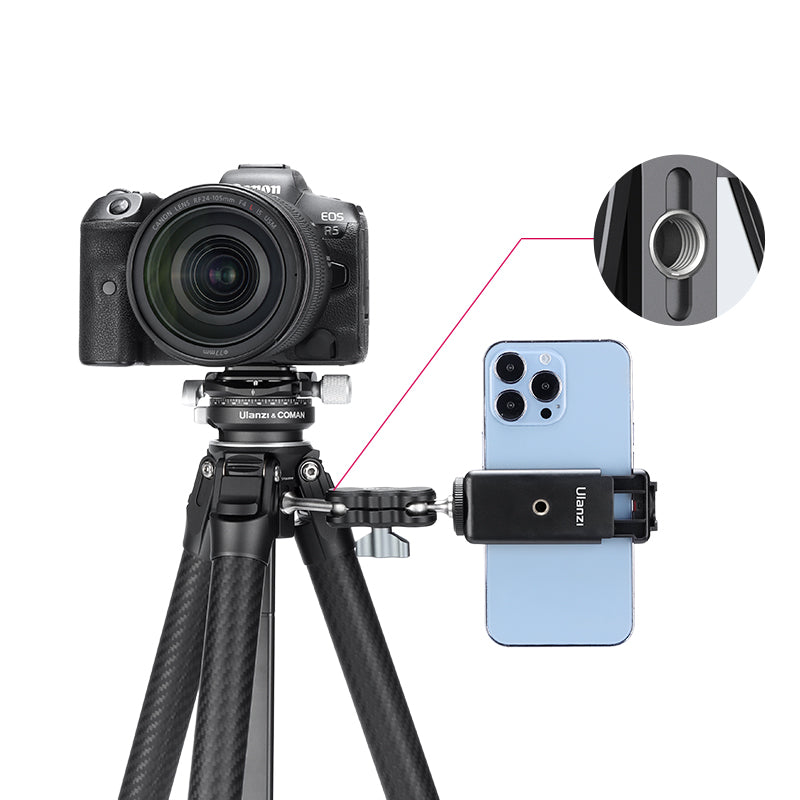 - Guličková hlava statívu nie je odnímateľná. Ak chcete vymeniť guličkovú hlavu statívu, odporúčame zakúpiť príslušenstvo k cestovnému statívu Ulanzi F38 Quick Release – 1/4 stredový stĺpik.