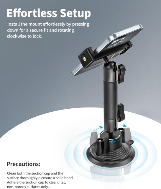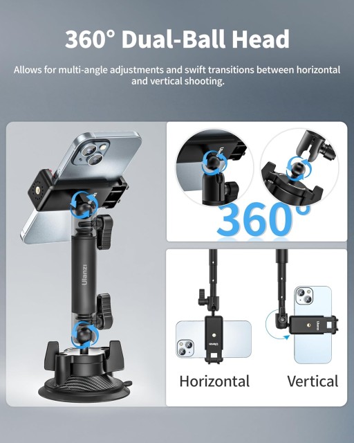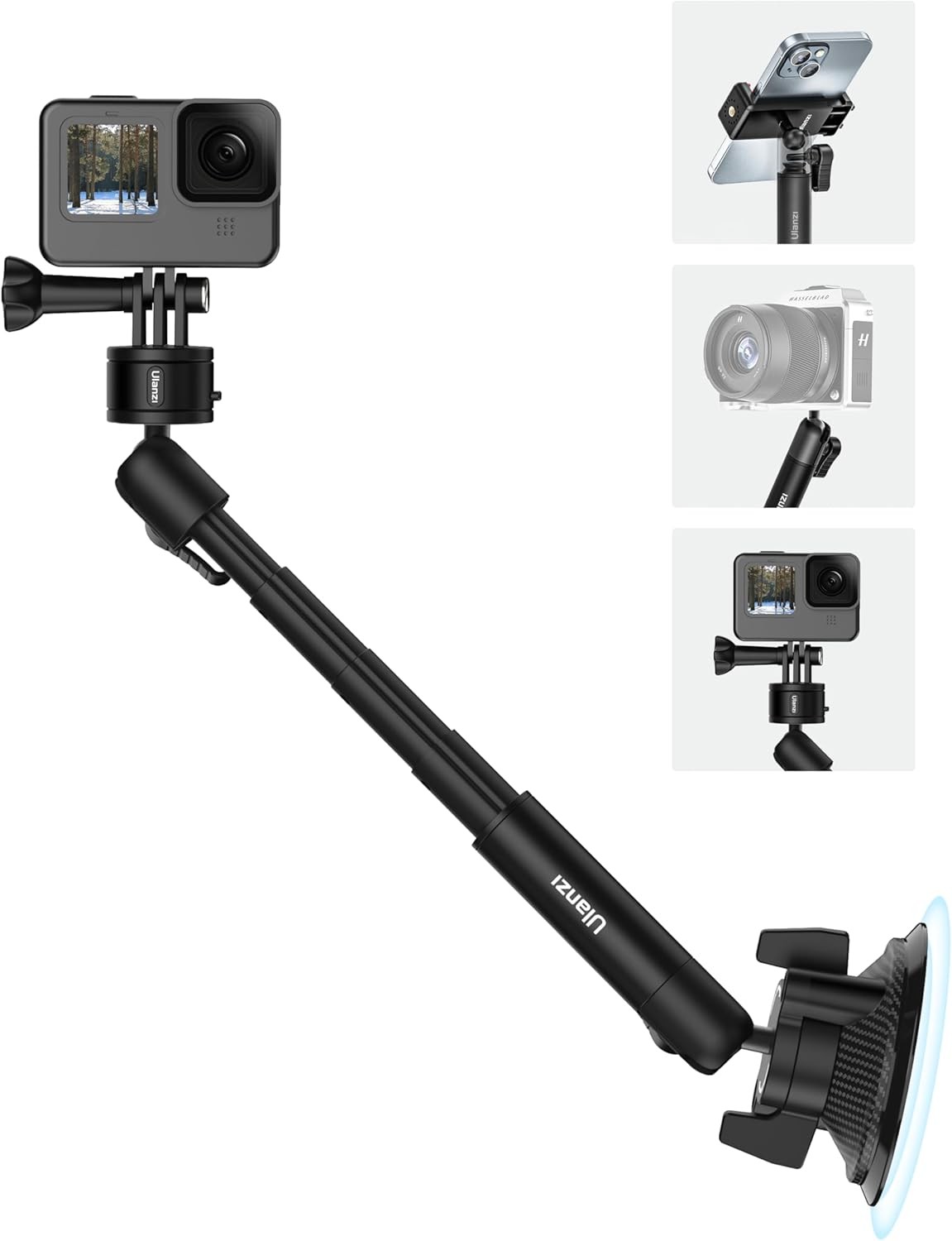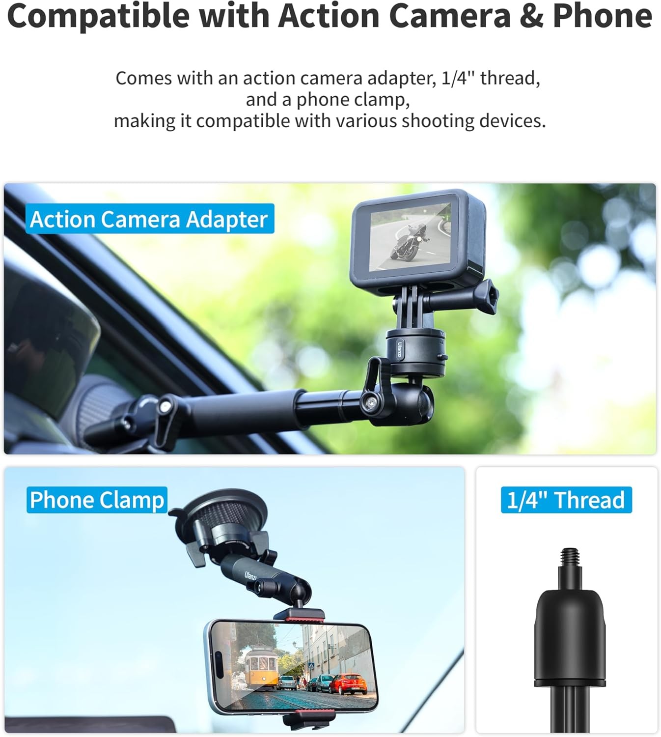 Magnetický držiak Ulanzi ZJ01 s prísavkou je univerzálny držiak s rýchlou inštaláciou pre fotoaparáty a smartfóny, ktorý je vybavený silnou prísavkou, 360° dvojitou guľovou hlavou a nastaviteľným teleskopickým ramenom pre dynamické uhly snímania v interiéri aj na vozidlách.