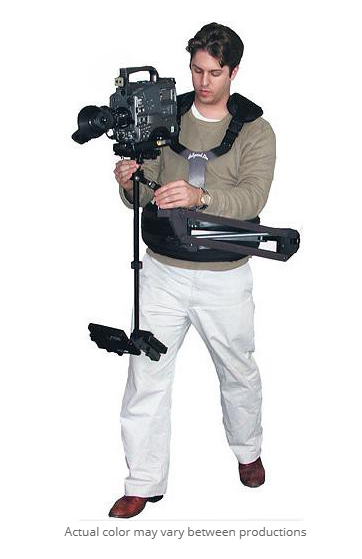 Súčasťou balenia je ergonomická vesta s kontúrovanou hrudnou podložkou, 4-bodovým systémom prackových spôn a výškovo nastaviteľnou hrudnou doskou, ktorá pohodlne podporuje ťažké kamerové zostavy počas dlhých natáčaní. Stabilizátor obsahuje aj 5" farebný monitor (štandard NTSC; PAL alebo 7" voliteľne), ktorý slúži ako externý hľadáčik a ako protiváha pre vertikálne vyváženie. Monitor a batérie sú plne nastaviteľné pre jemné doladenie rovnováhy a prevádzky.