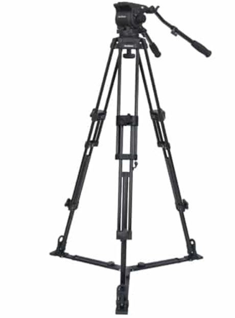 Nohy statívu sú vyrobené z odolného hliníka, disponujú dvojstupňovým nastavením pre kompaktné skladovanie a sú kompatibilné so systémom D50 dolly. Podlahová rozpierka s nastaviteľnou dĺžkou zvyšuje stabilitu na nerovných povrchoch, zatiaľ čo priložené polstrované puzdro uľahčuje transport.