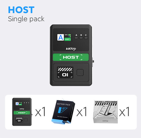 Hostiteľský radič Vaxis Litecomm V1 je plne duplexný bezdrôtový interkomový rozbočovač pre systém Litecomm V1, ktorý ponúka dosah 350 m v priamom výhľade pomocou 1,9 GHz DECT, rýchle párovanie NFC s hostiteľom, pripojenie Bluetooth 5.1 k slúchadlám Air Headset (predávajú sa samostatne), redukciu šumu DSP s dvojitým mikrofónom, nabíjanie/audio cez USB-C, 3,5 mm výstup a až 8 hodín prevádzky na priloženú vymeniteľnú batériu s kapacitou 1720 mAh, s jednoduchou obsluhou ideálnou pre produkčné tímy.