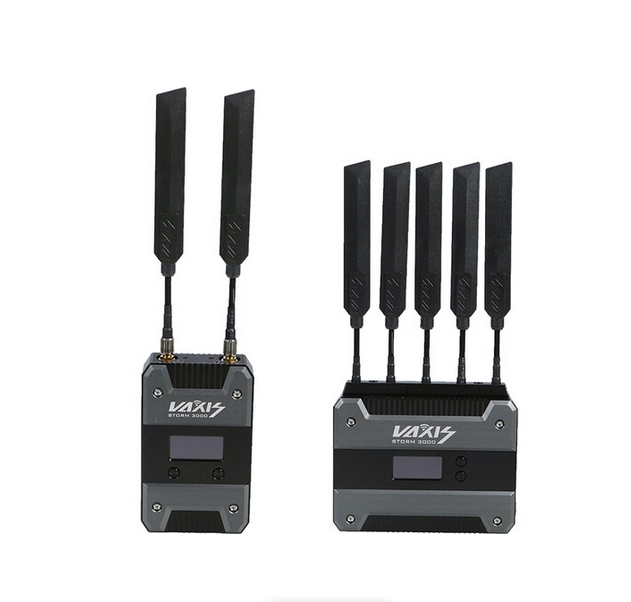 Súprava Vaxis Storm 3000 Wireless TX/RX Kit umožňuje profesionálny prenos nekomprimovaného videa 1080p60 a integrovaného zvuku v dosahu 1000 m priamou viditeľnosťou pomocou 10 voliteľných kanálov 40/20 MHz v pásme 5 GHz, pričom podporuje multicast na neobmedzený počet prijímačov pre monitorovanie viacerých kamier. Vysielač s kovovým telom (268 g) ponúka 1x vstup HDMI 1.3, 1x vstup 3G-SDI a 1x výstup 3G-SDI, zatiaľ čo prijímač (405 g) s integrovanou batériovou doskou Gold-mount poskytuje 1x výstup 3G-SDI a 1x výstup HDMI 1.3. Obe jednotky disponujú 128-bitovým AES šifrovaním, napájaním 6–36 VDC LEMO, micro-USB portmi a pracujú v teplotnom rozsahu 0–40 °C. V kombinácii s voliteľným skenerom RF kanálov Storm 5G môžu používatelia okamžite vizualizovať použiteľné párovanie kamier v preplnených RF prostrediach.