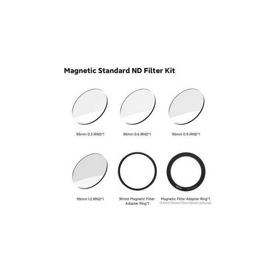 Súprava magnetických štandardných ND filtrov Vaxis VFX 95 mm obsahuje filtre IRND s 1-, 2-, 3- a 4-stupňovým tlmením s magnetickým adaptérovým krúžkom, ktorý umožňuje rýchlu výmenu a stohovanie pre presné ovládanie expozície a vernú reprodukciu farieb. Je kompatibilná s objektívmi 95 mm alebo matnou skriňou Tilta Mirage Matte Box a využíva prémiové optické sklo K95 s úplným spektrom IR/UV oddelenia a obojstrannou 12-vrstvovou povrchovou úpravou.
