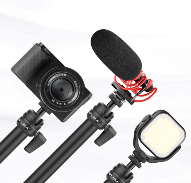 Flexibilný stolový stojan na kameru VIJIM LS08 je inovatívny nástroj navrhnutý tak, aby zefektívnil váš tvorivý pracovný postup. Vďaka trojstupňovému systému ohybného ramena umožňuje plynulé a presné nastavenie polohy pri snímaní záberov zhora, z rovnej plochy a z dynamických uhlov.