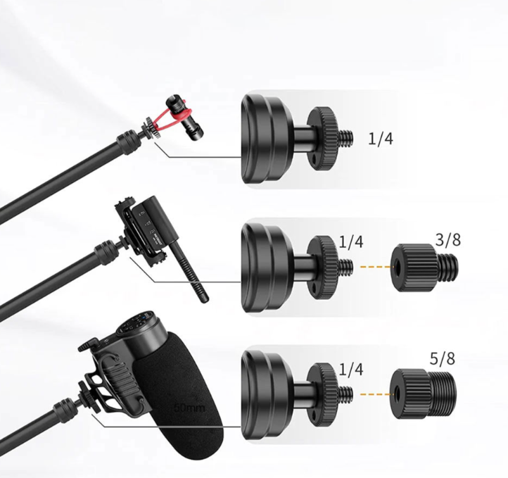 LS08 je vyrobený z vysoko kvalitného kovu, čo zaručuje odolnosť a stabilitu, pričom zostáva dostatočne ľahký na jednoduchú prepravu. Silná C-svorku sa bezpečne pripevní k stolu alebo stolíku a poskytuje pevný základ pre vaše zariadenie. Vďaka univerzálnym montážnym možnostiam 1/4", 3/8" a 5/8" podporuje širokú škálu zariadení, vrátane kamier, smartfónov, mikrofónov a LED svetiel.