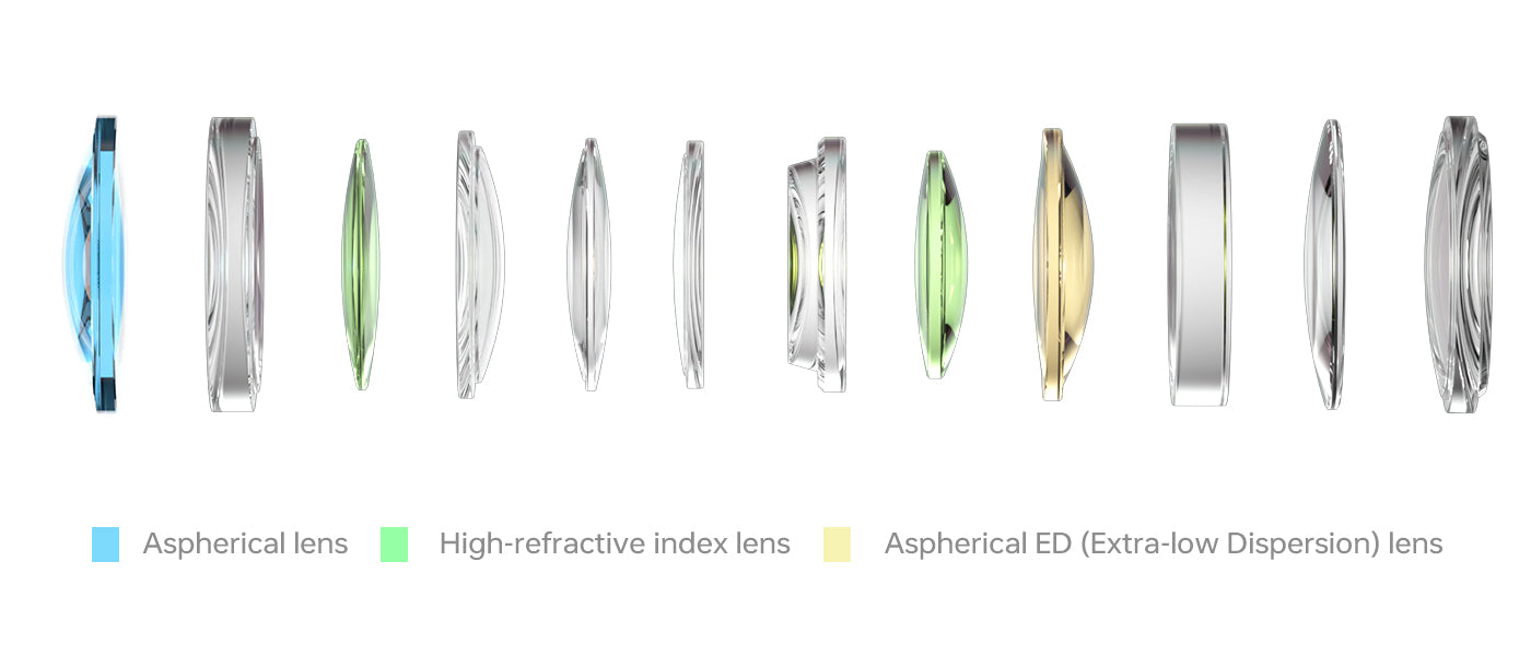 Obsahuje 1 prvok s mimoriadne nízkym rozptylom, 2 prvky s vysokým indexom lomu a 2 asférické prvky s viacvrstvovou HD nano vrstvou,