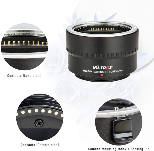 Predlžovacia trubica Viltrox DG-GFX 45 mm je špeciálne vyvinutá pre stredoformátové fotoaparáty Fuji GFX-mount FUJIFILM GFX50S/GFX50R.Môže sa používať samostatne alebo v kombinácii s inou 18 mm predlžovacou trubicou, ktorou možno dosiahnuť 3 rôzne druhy zväčšenia a dokonale spolupracovať s automatickým zaostrovaním fotoaparátu.Čistý kolíček, dokonalá zhoda. Kovové rozhranie, AF, lepší prenos
