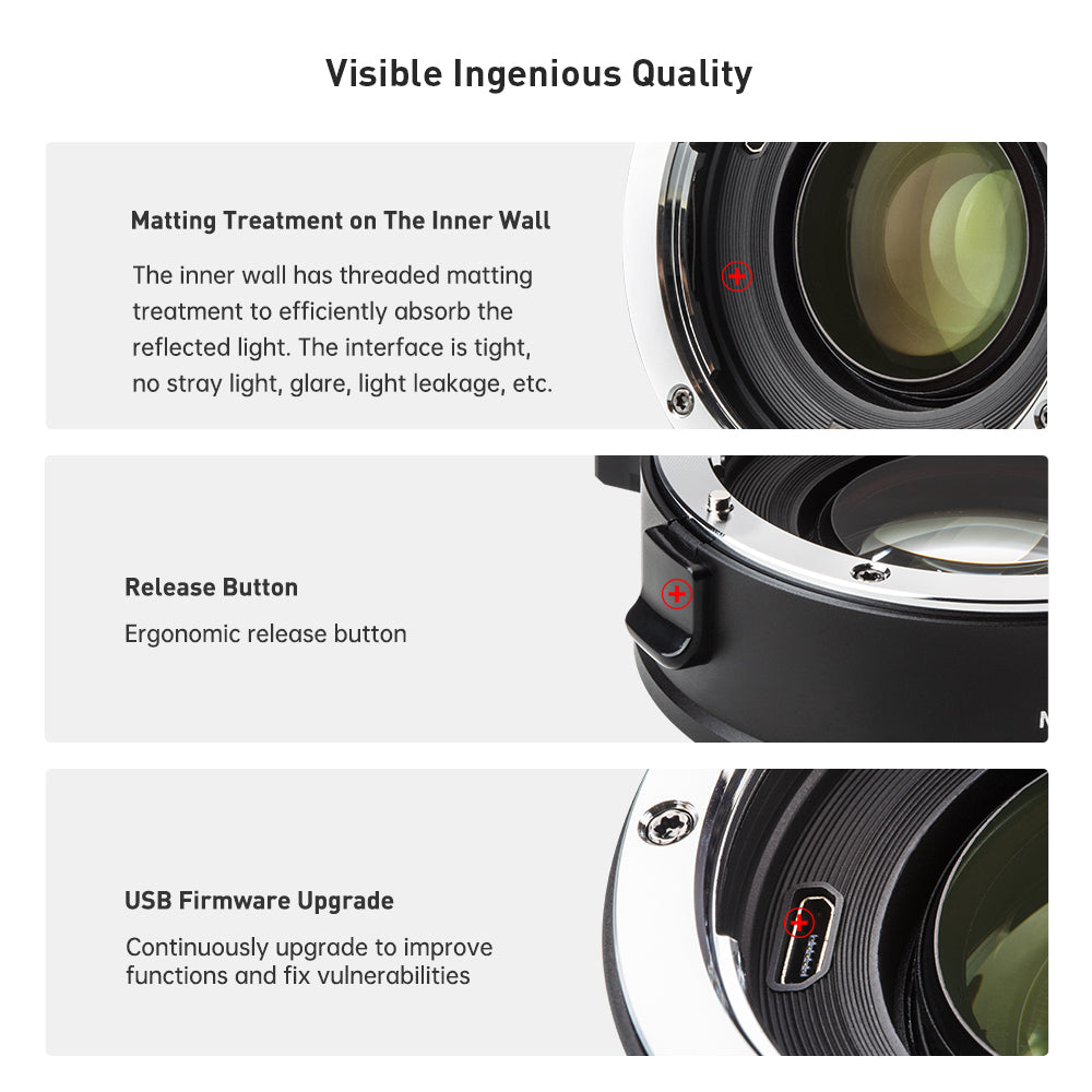 Viltrox EF-Z2 speed booster umožňuje vášmu Nikonu Z6,Z7 alebo Z 50 mať viac možností objektívov spomedzi série s bajonetom EF, pričom zachováva pôvodný výkon AF objektívu, stabilizáciu a podporuje AF s detekciou tváre a očí od spoločnosti Nikon. Ponúka tiež 0,71x ekvivalentnú ohniskovú vzdialenosť na základe pôvodnej ohniskovej vzdialenosti a zvyšuje clonu…