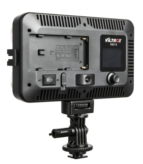 Nastaviteľné RGB LED svetlo RB10 od spoločnosti Viltrox je LED svetlo na kamere so 64 bielymi, 64 teplými bielymi a 14 RGB LED diódami. Toto kompaktné svetlo s výkonom 850 lúmenov má rozsah teploty farieb 3300 až 5600 K a stmievanie 20 až 100 %. Vstavaný displej OLED zobrazuje teplotu farieb, úroveň jasu a zostávajúcu energiu batérie.