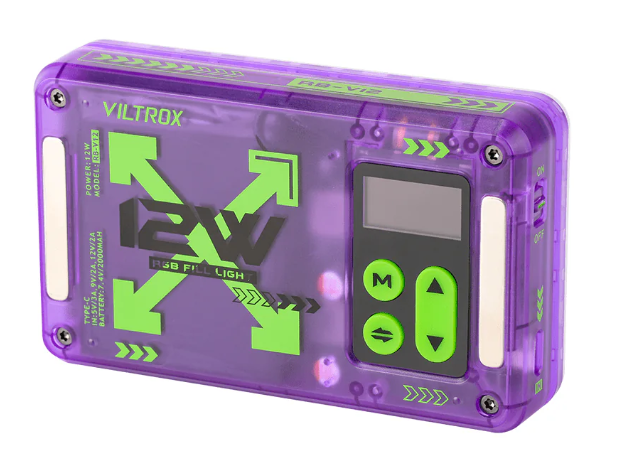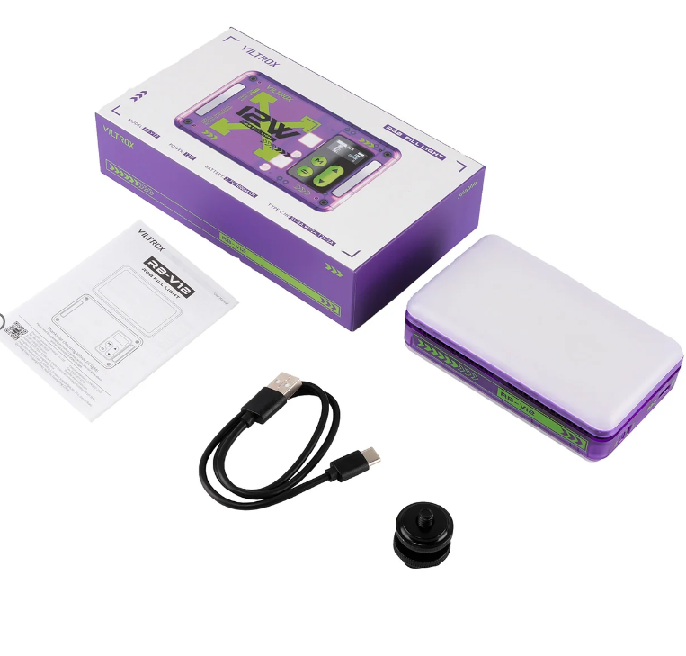 Viltrox RG-V12 (fialová) / RB-V12 magnetická prenosná RGB LED lampa je vysoko kvalitné prenosné osvetlenie určené pre fotografov a tvorcov obsahu, ktorí potrebujú flexibilitu a presnosť. Tento 12 W panel s mäkkým svetlom je vybavený 108 LED diódami (72 dvojfarebnými + 36 RGB) a poskytuje až 1200 lumenov jasného, rovnomerného osvetlenia s vynikajúcou farebnou presnosťou (CRI ≥95, TLCI ≥95). Nastaviteľný rozsah farebnej teploty 2500 K – 8500 K, plná kontrola odtieňa 0° – 360° a 26 vstavaných svetelných efektov FX umožňujú nekonečné kreatívne možnosti.
