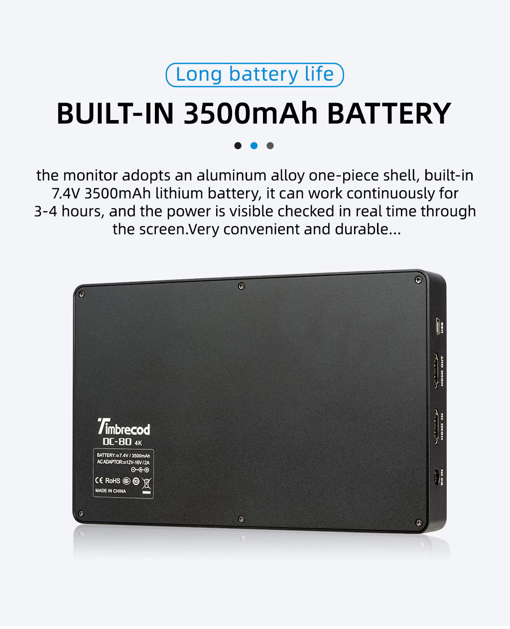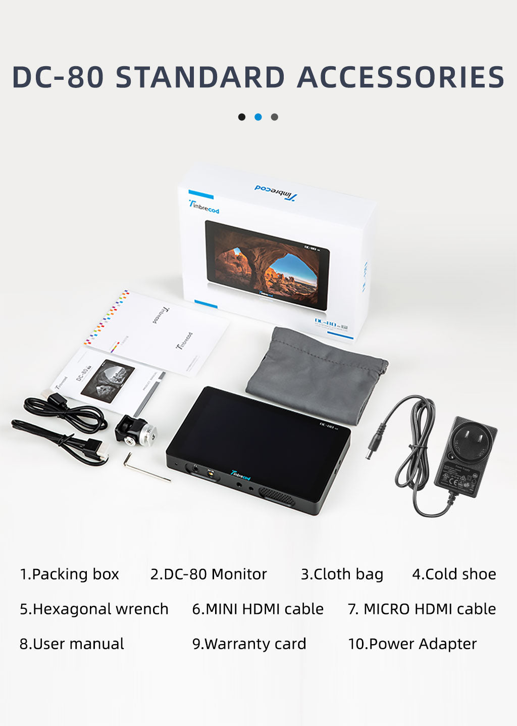 DC-80 je 7-palcový monitor s ultra vysokým rozlíšením a rozlíšením až 1920 × 1200 pixelov. Možno ho použiť na bezzrkadlovkách alebo digitálnych HD videokamerách na zobrazenie videosignálov HDMI z fotoaparátu v reálnom čase. Vďaka ľahkému a kompaktnému telu dokáže splniť rozmanité požiadavky fotografov v profesionálnej oblasti tým, že výstupom je obraz vo vysokej kvalite.