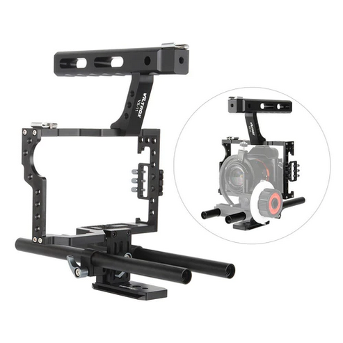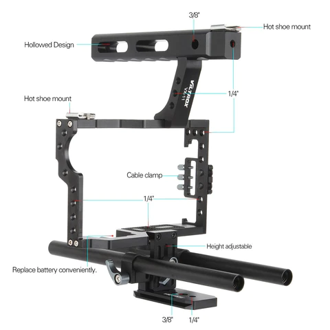 Klietka na video z hliníkovej zliatiny VX-11 je dobrou voľbou, ktorá vám uľahčí a zdokonalí natáčanie. Má desiatky štandardných 1/4" a 3/8" otvorov na skrutky a 2 držiaky hot shoe, ktoré vám pomôžu ľahko umiestniť video príslušenstvo! Popustite uzdu svojej kreativite.