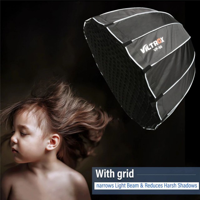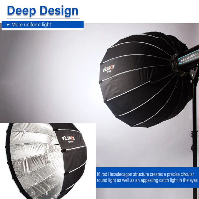 Softbox pre LED reflektor Viltrox Weeylite Ninja 400 (a ďalšie s bajonetom Bowens, napr. Sokani x60/Godox SL-60W VL150/Aputure 1202). Priemer 90 cm, hĺbka 62 cm, hmotnosť 2,2 kg. Balenie obsahuje tašku na prenášanie a voštinový filter.