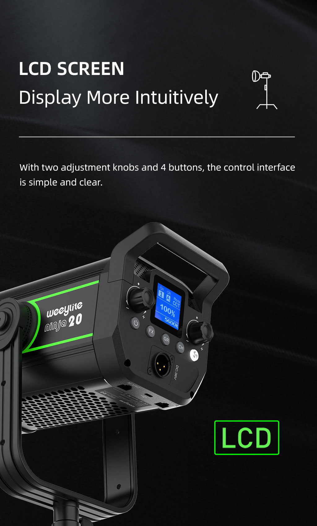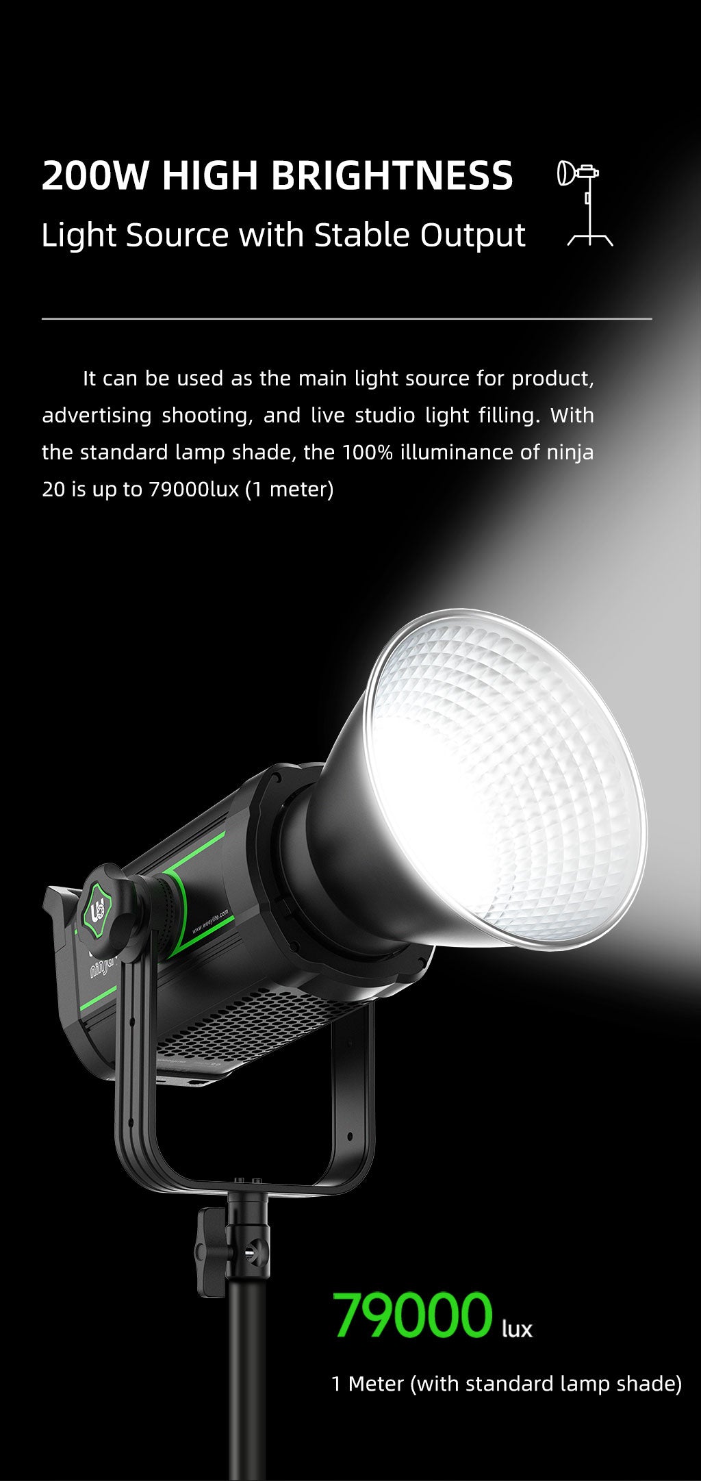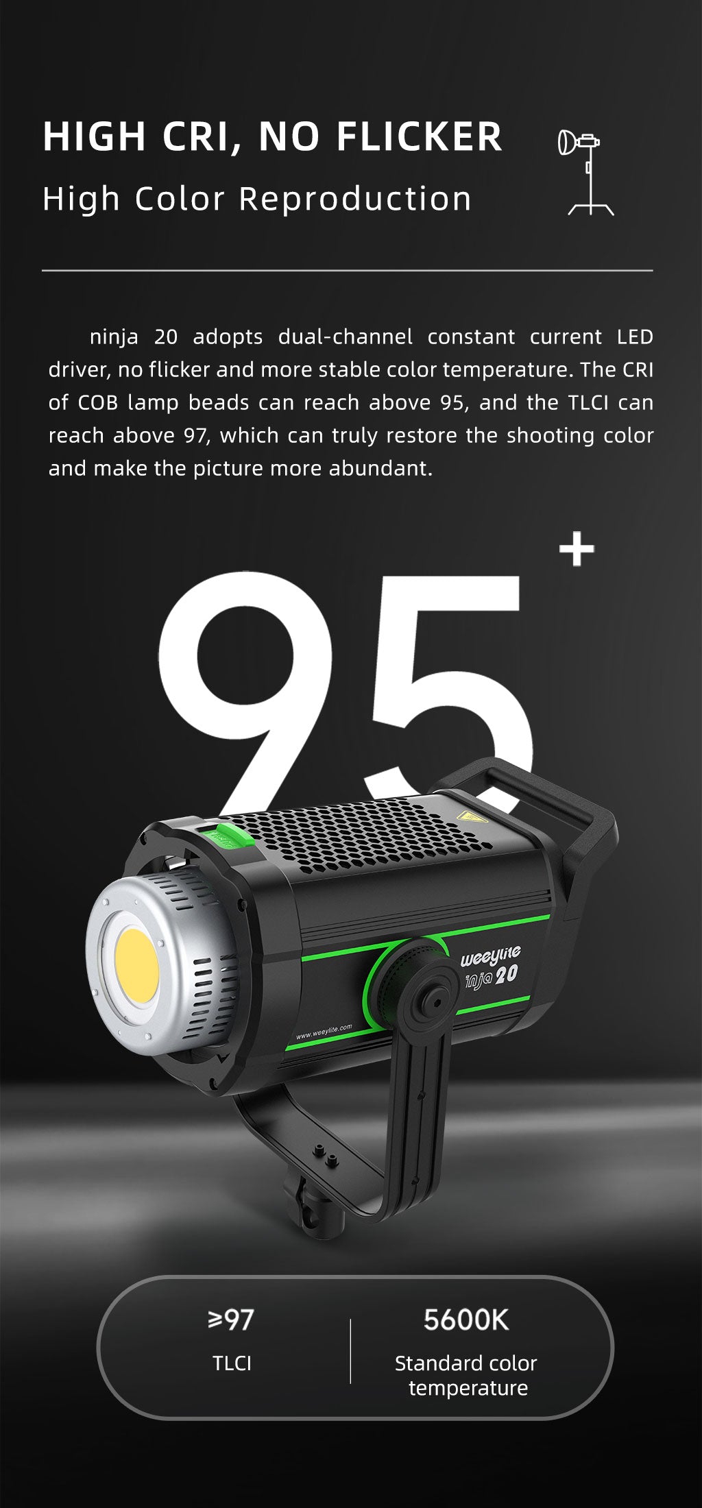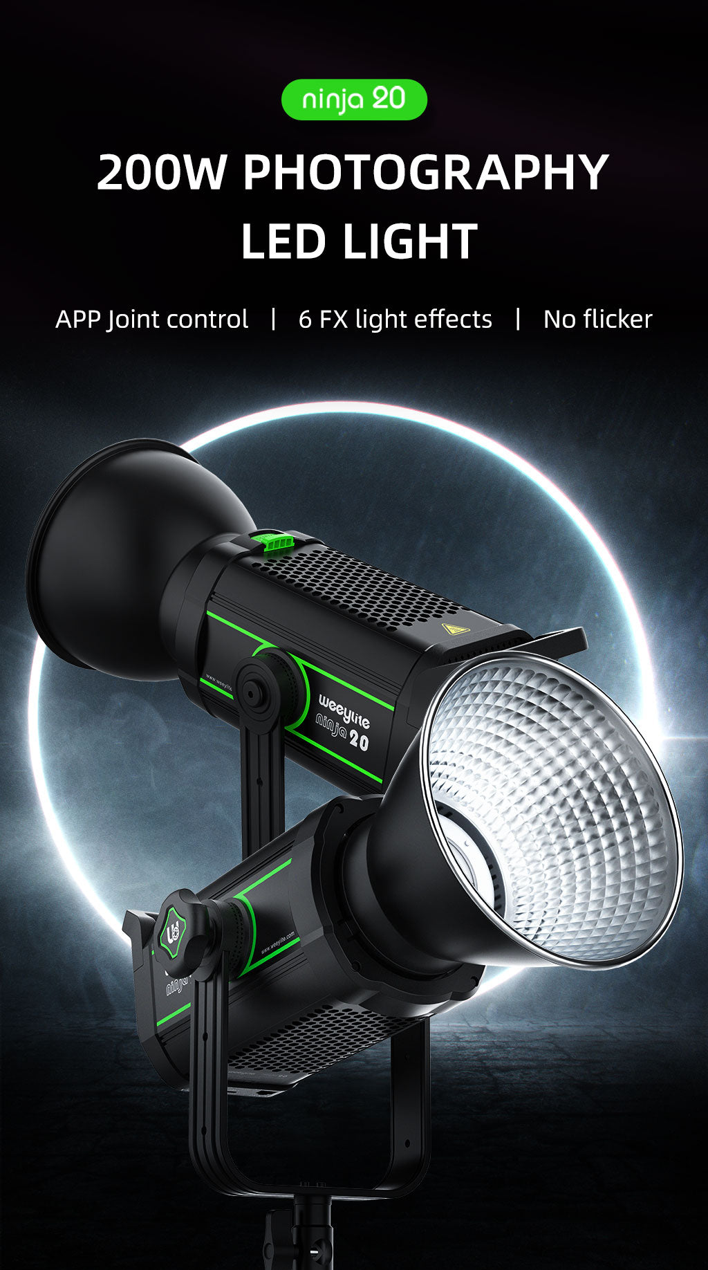 Weeylite Ninja 20 200W 5600K APP Joint Control 6 FX Light Effects TLCI≥97, RA≥95 Profesionálne COB LED svetlo