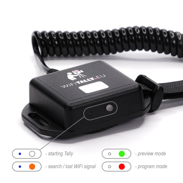 WiFi Tally light micro obsahuje dve LED svetlá. Táto má modrú farbu, ktorá signalizuje stav pripojenia alebo stratu signálu. Druhá LED dióda informuje operátora kamery (kameramana) o stave jeho režijného záberu. Ak je hlavná LED dióda zelená, záber sa pripravuje na vysielanie, a ak je LED dióda červená, jeho záber sa bude vysielať. Toto je farebne prispôsobené bežnému dizajnu všetkých režijných videí náhľad/zelená a program/červená.